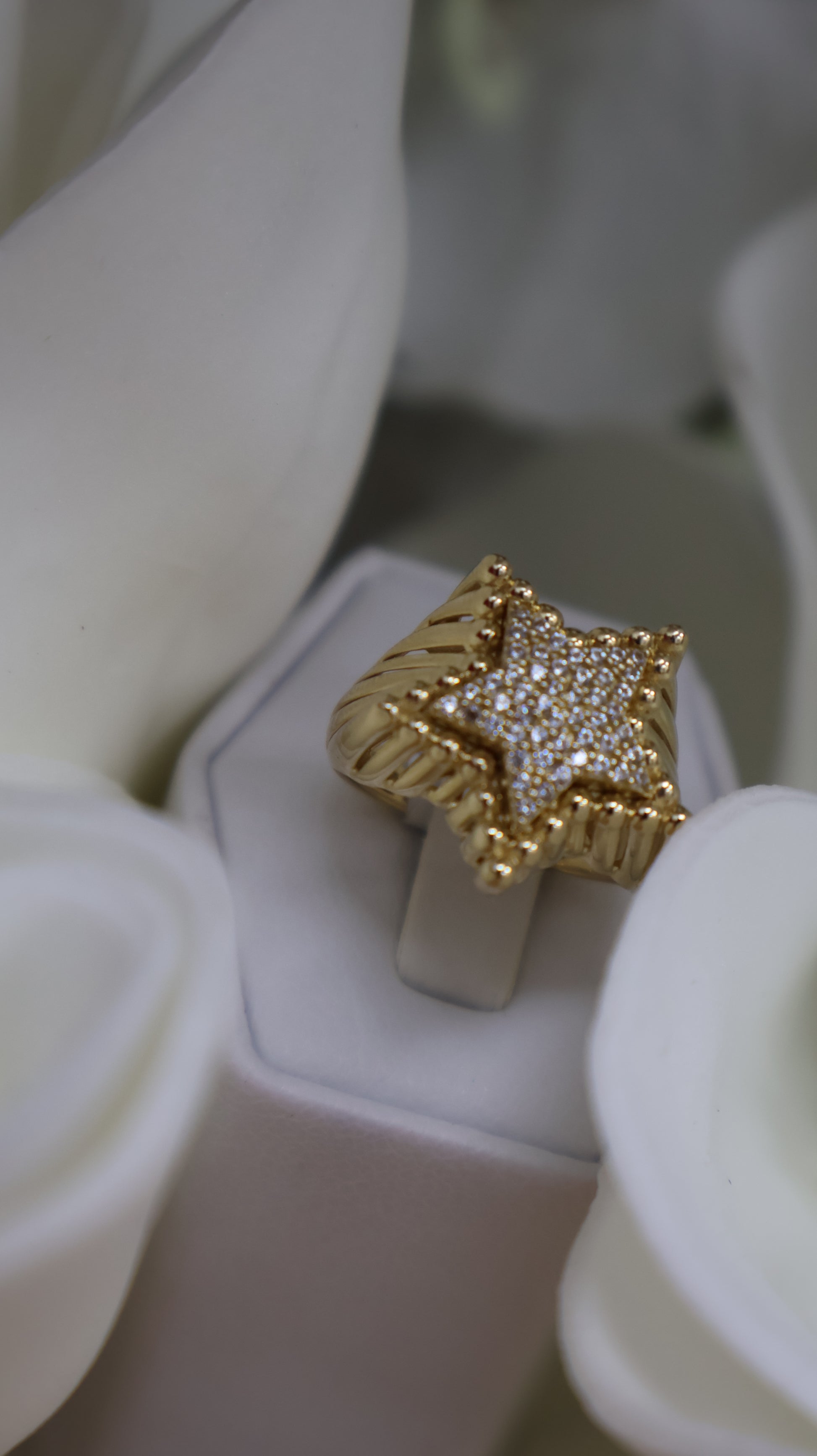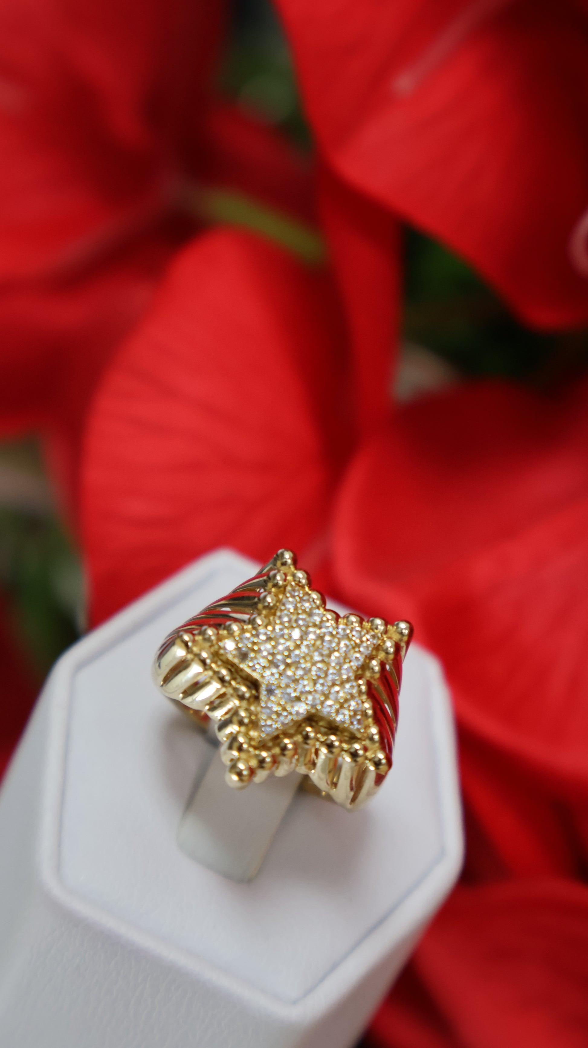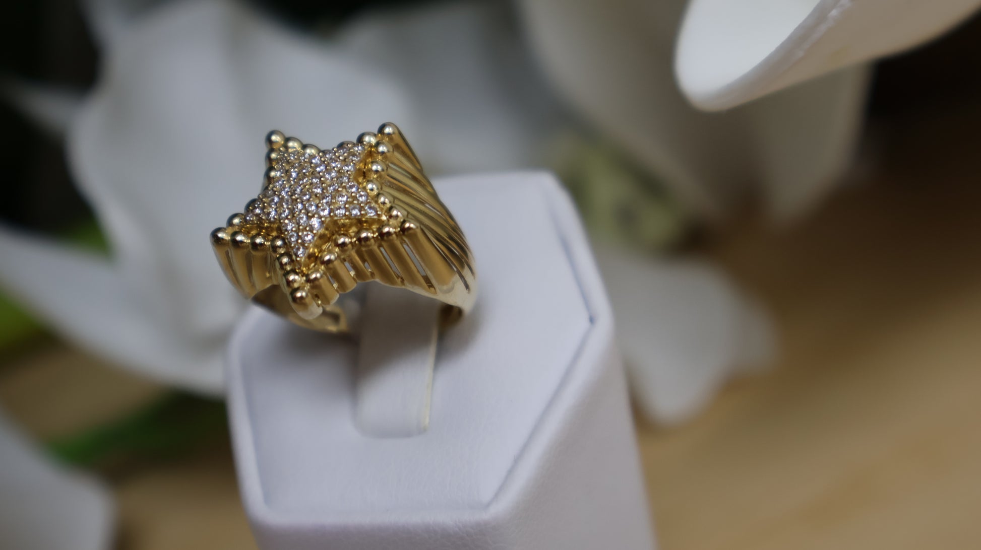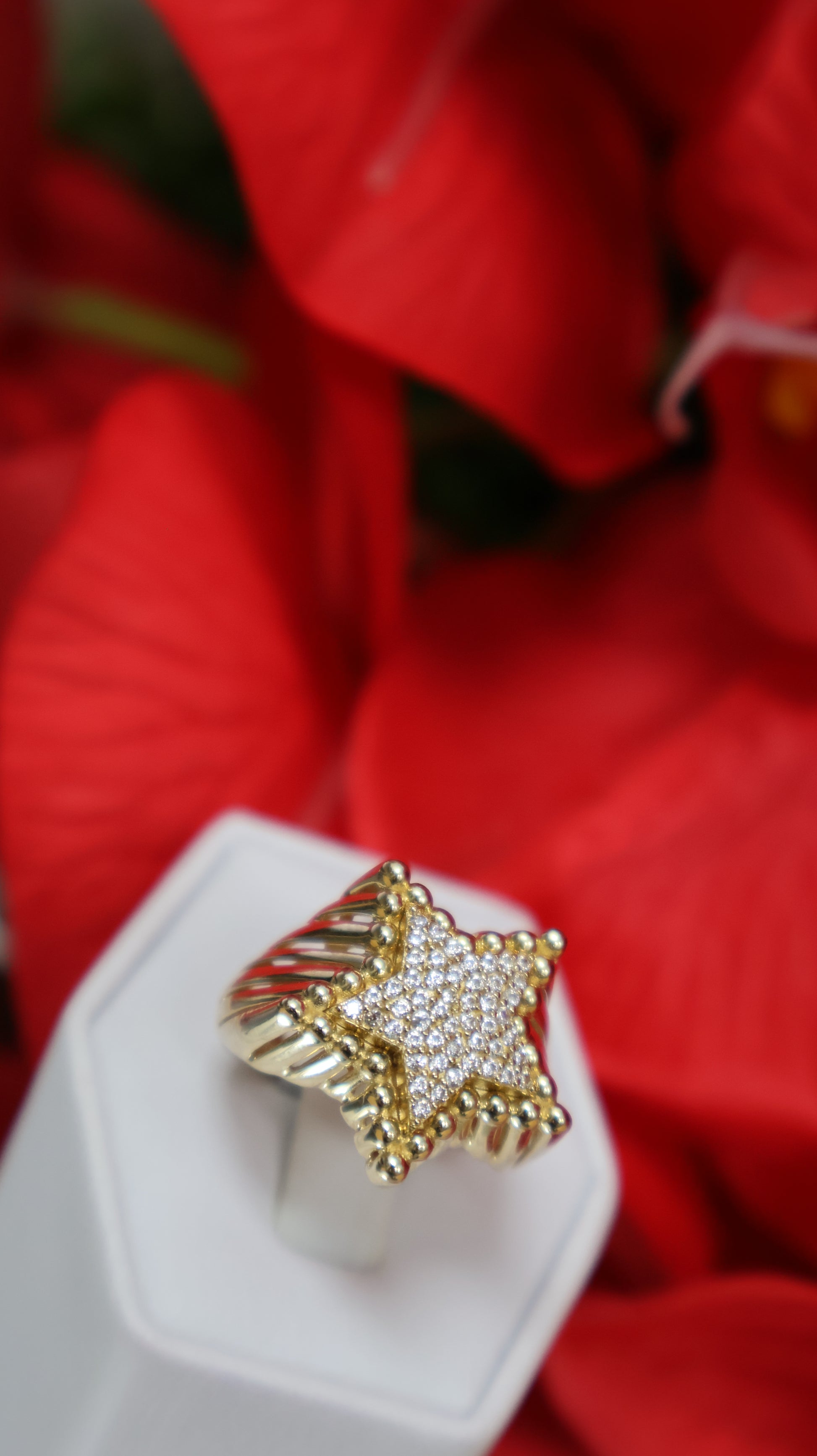 anillo de mujer 14k estrella con sirconia blanca moderno