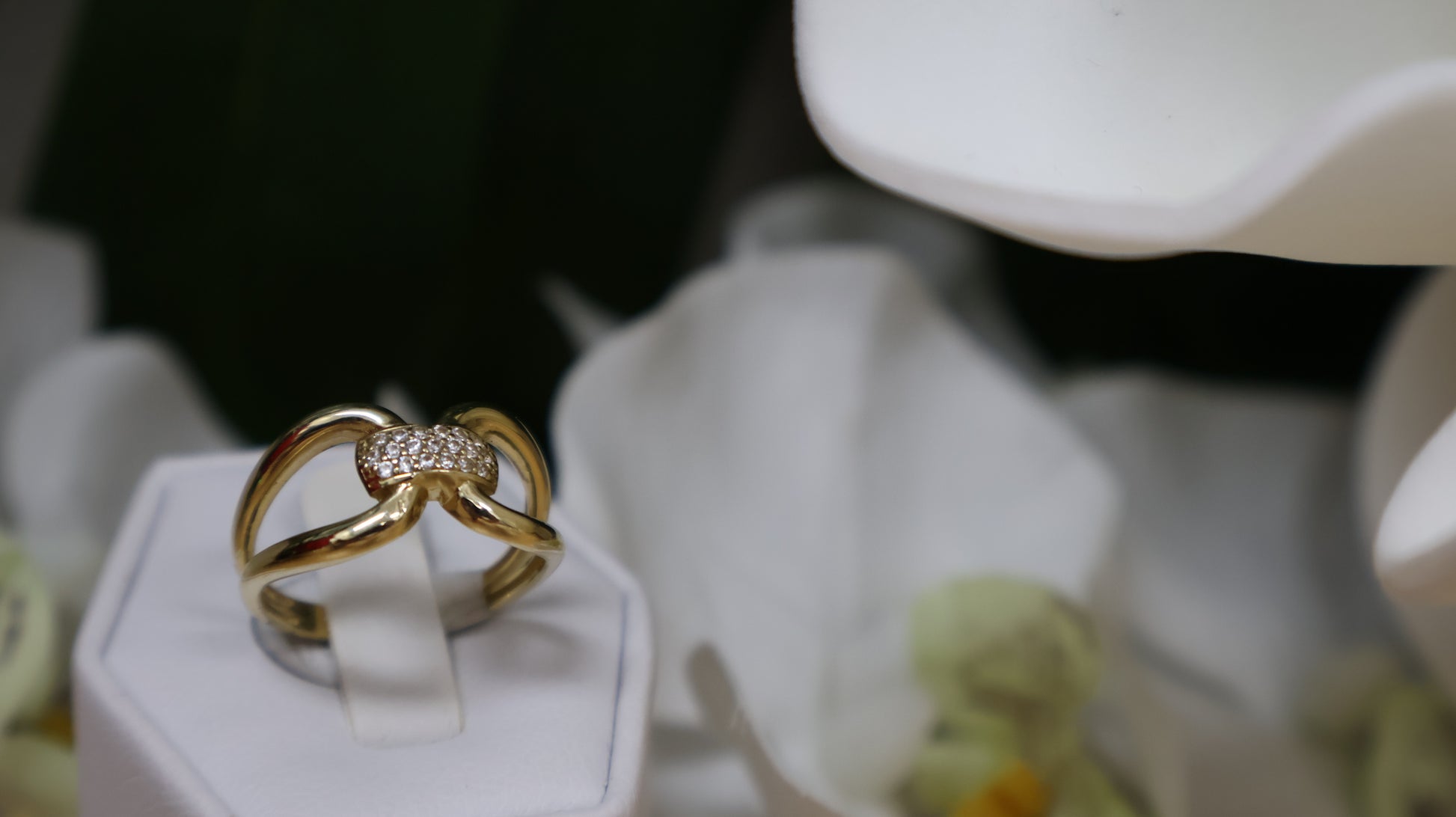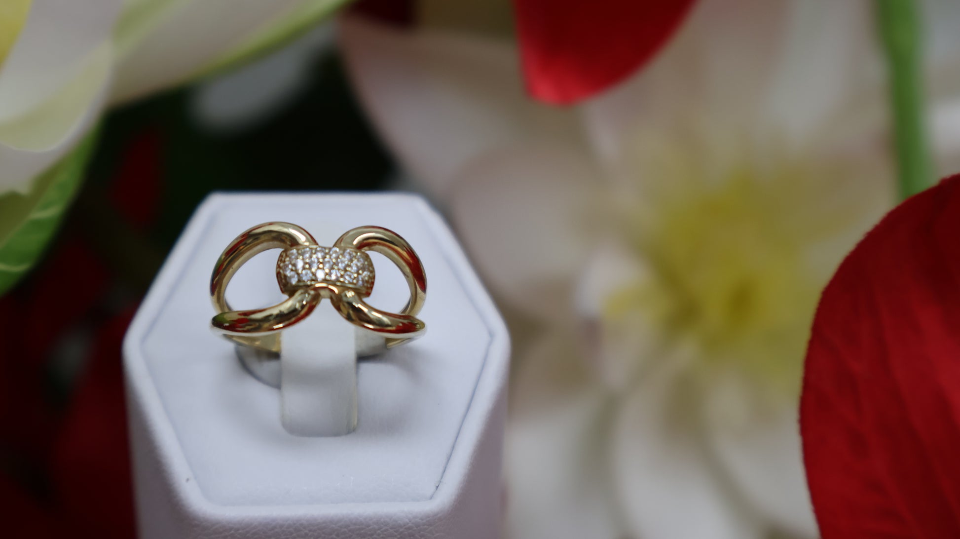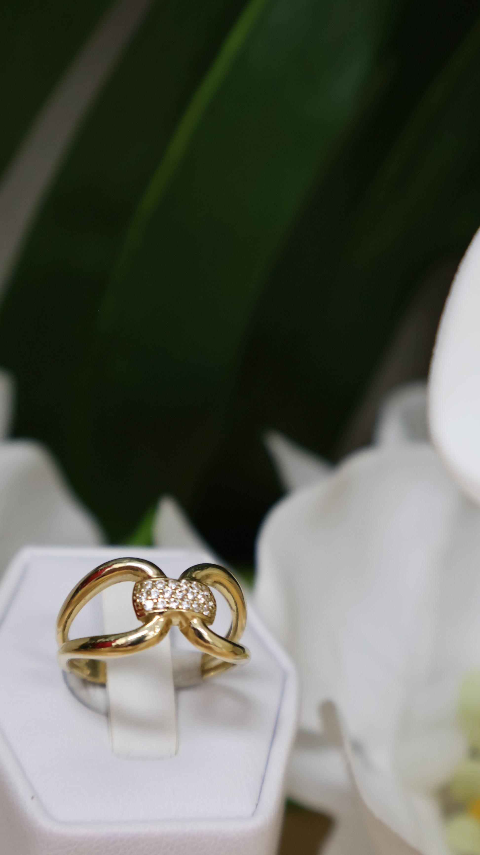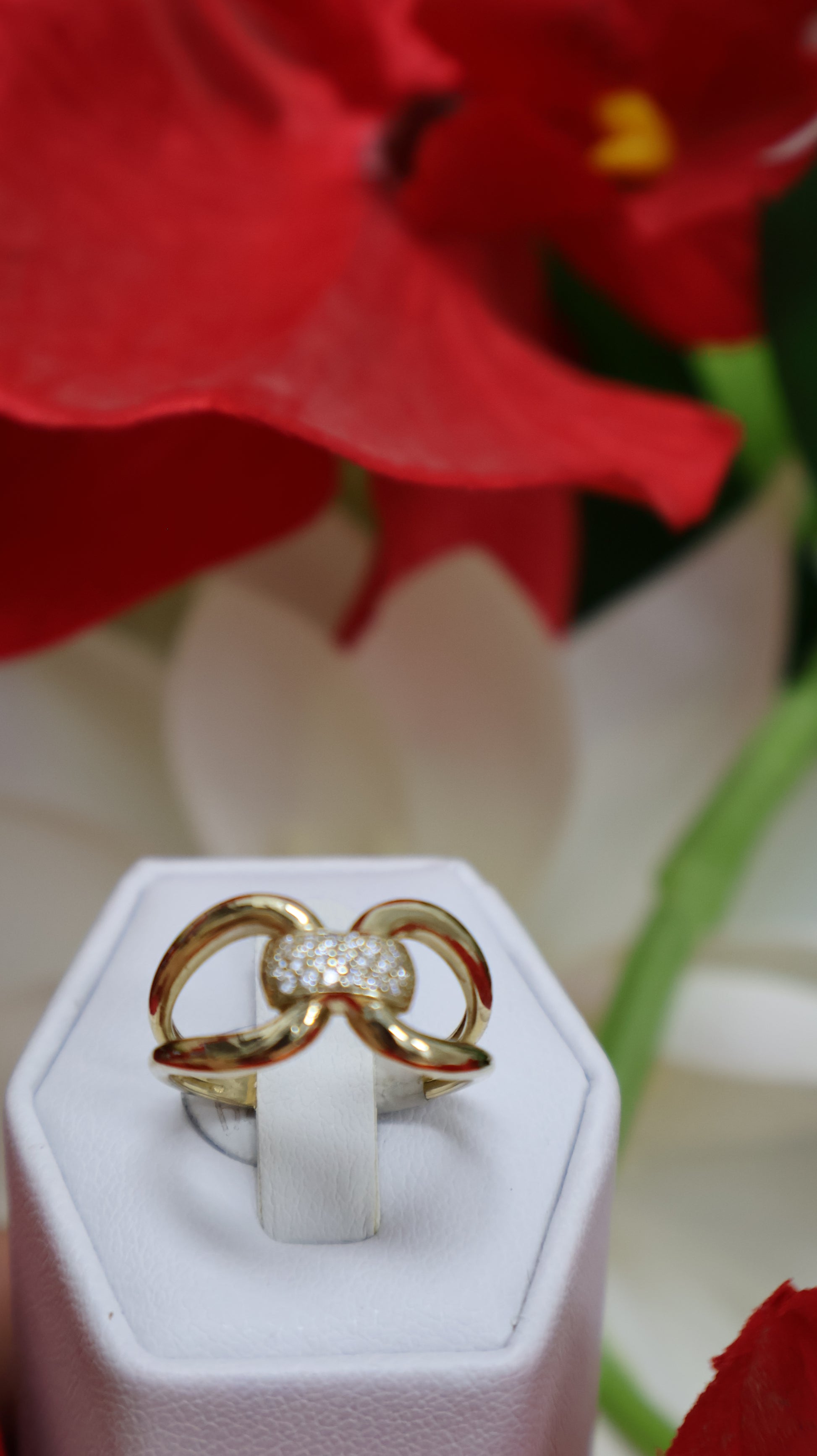 anillo de mujer 14k diseno de lazo con circonia en blanca
