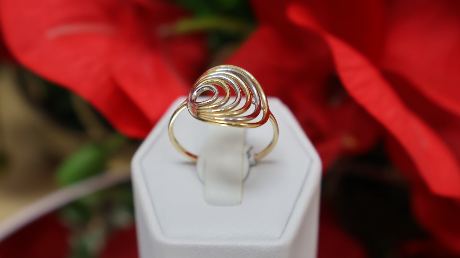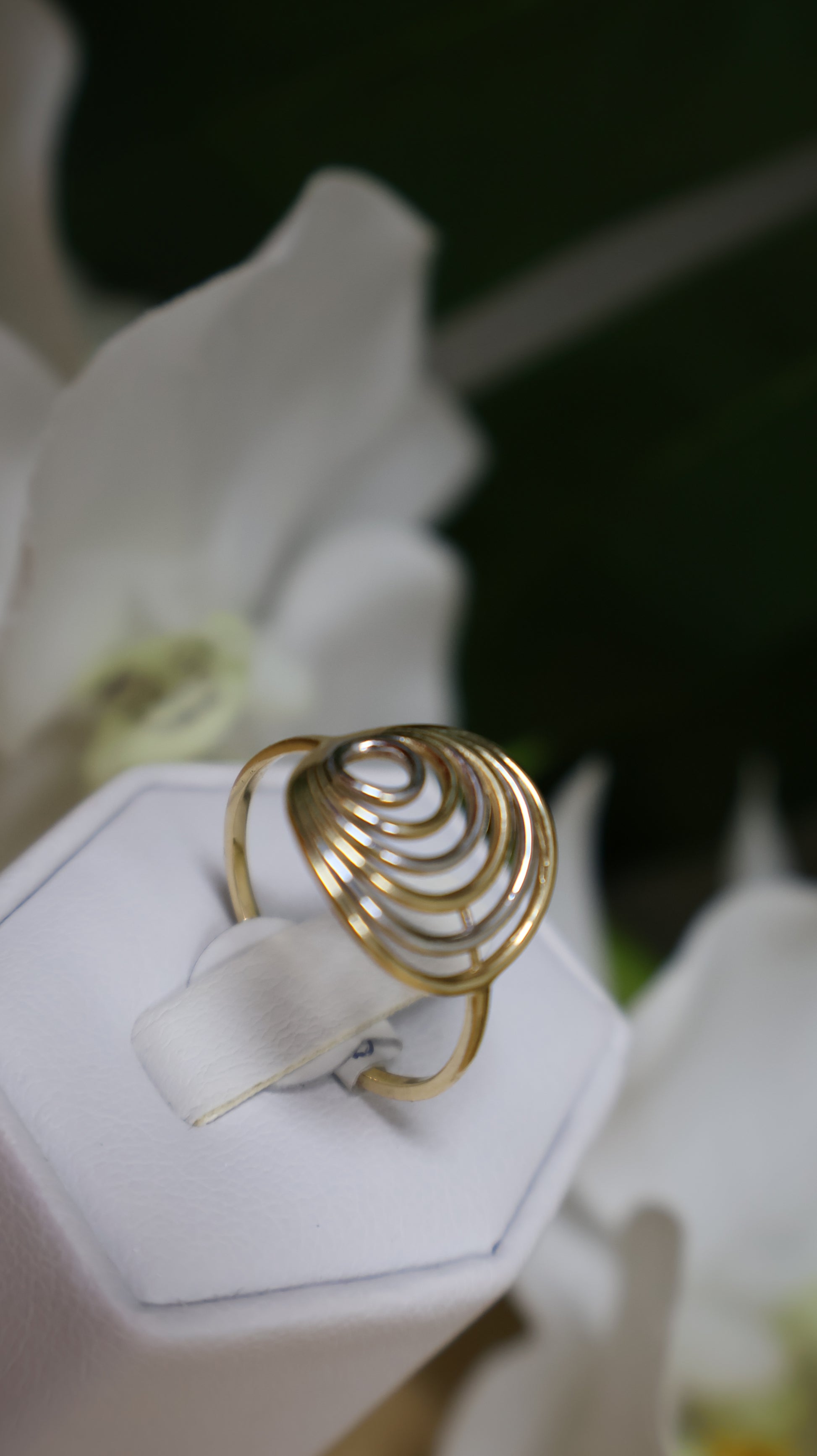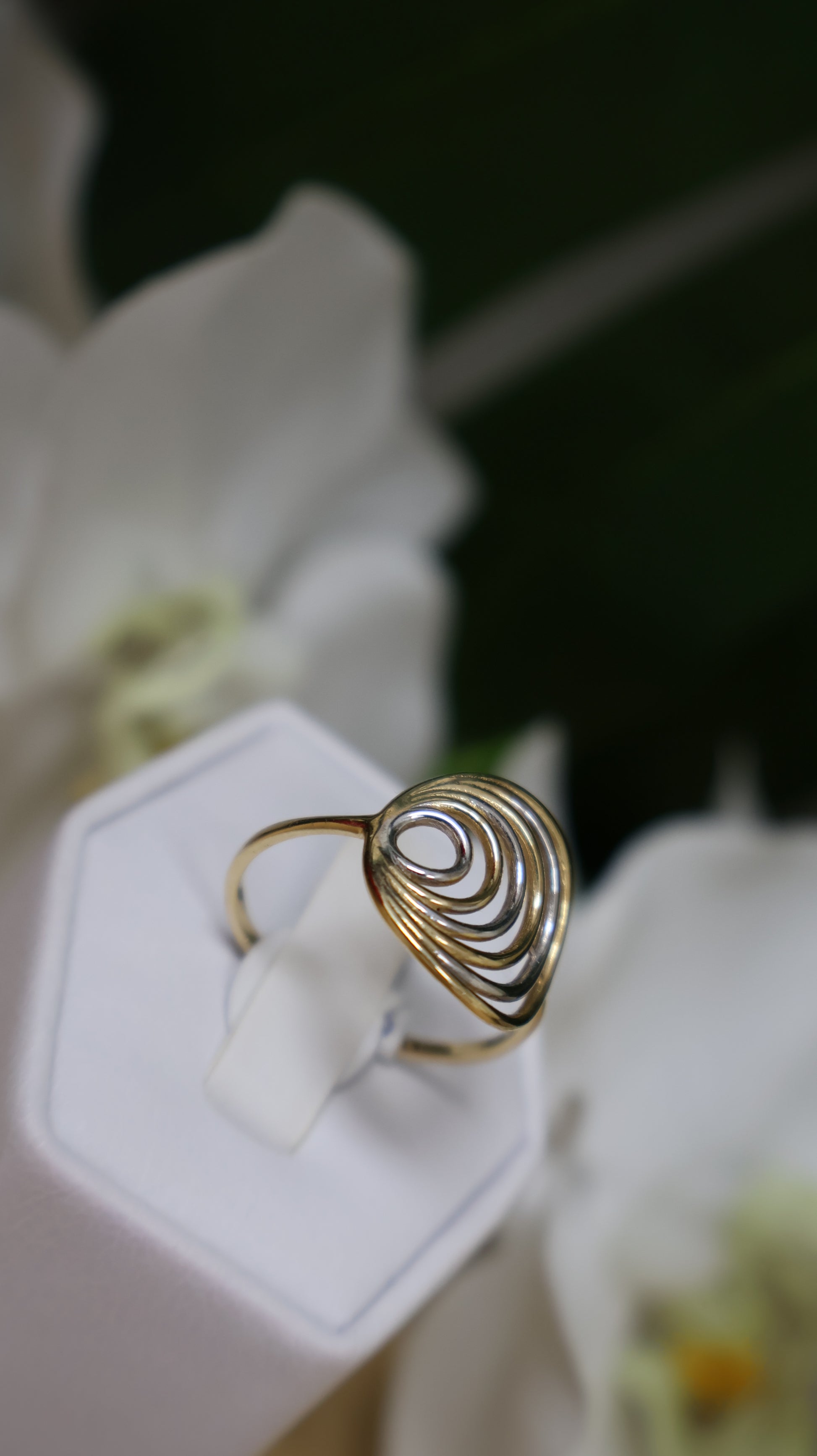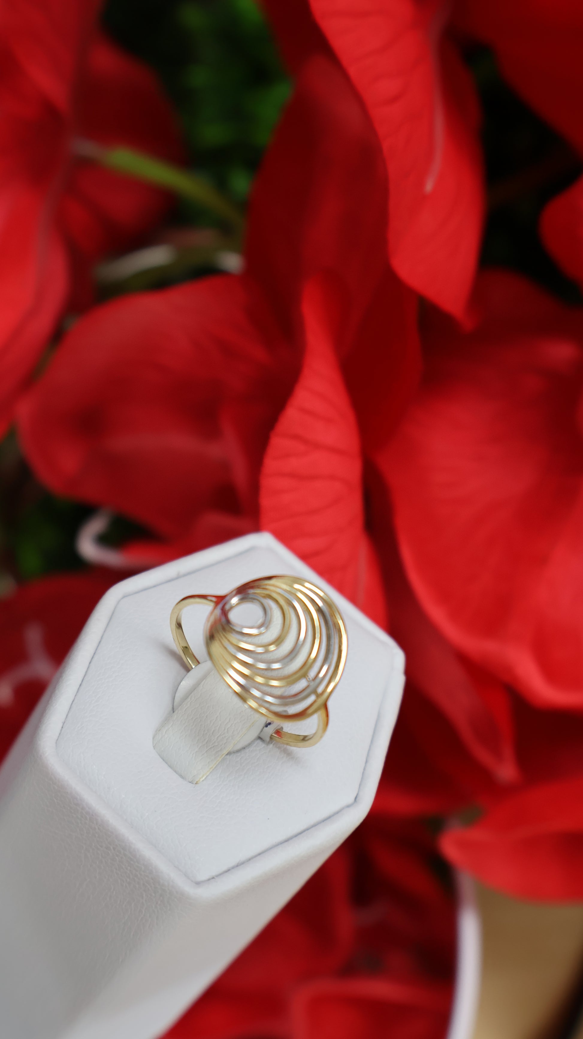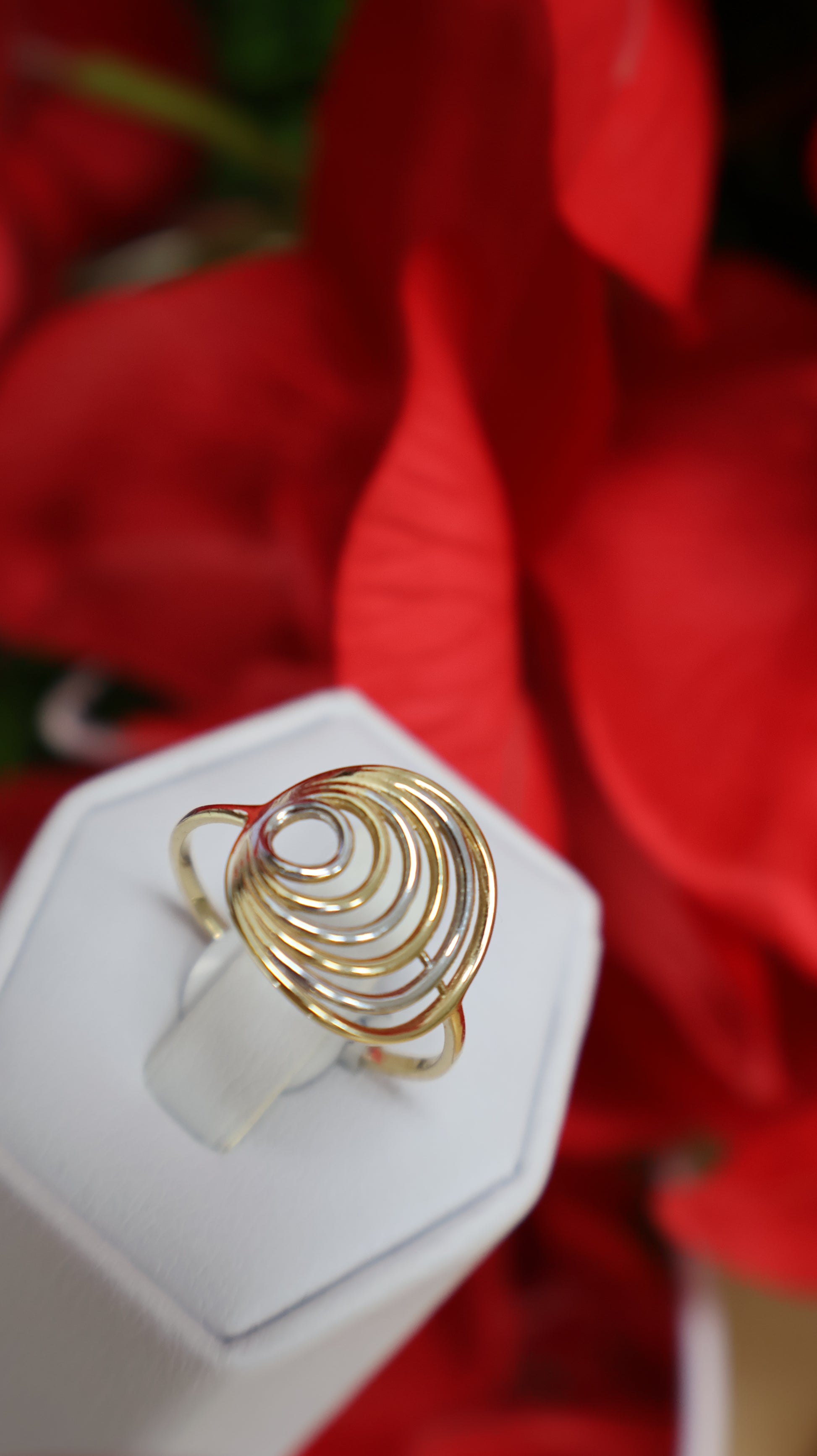 Este anillo de mujer en oro 14k de dos tonos combina la calidez y el brillo de diferentes acabados para crear una pieza elegante y versátil. Su diseño sofisticado aporta un toque de distinción y modernidad, ideal para complementar cualquier estilo con un detalle exclusivo y refinado. Perfecto para quienes buscan una joya que destaque por su elegancia atemporal.