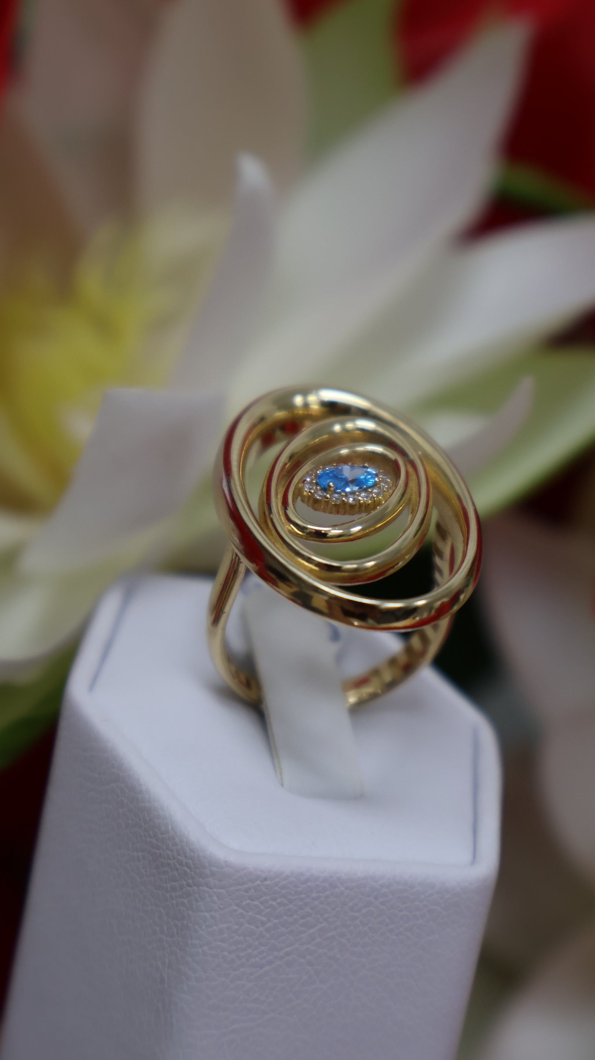 Este anillo de mujer en oro de 14k presenta una piedra azul aqua en el centro, que aporta un toque de frescura y sofisticación. Su diseño elegante y delicado realza cualquier estilo, convirtiéndolo en una joya perfecta para ocasiones especiales o para el uso diario con un toque de distinción.