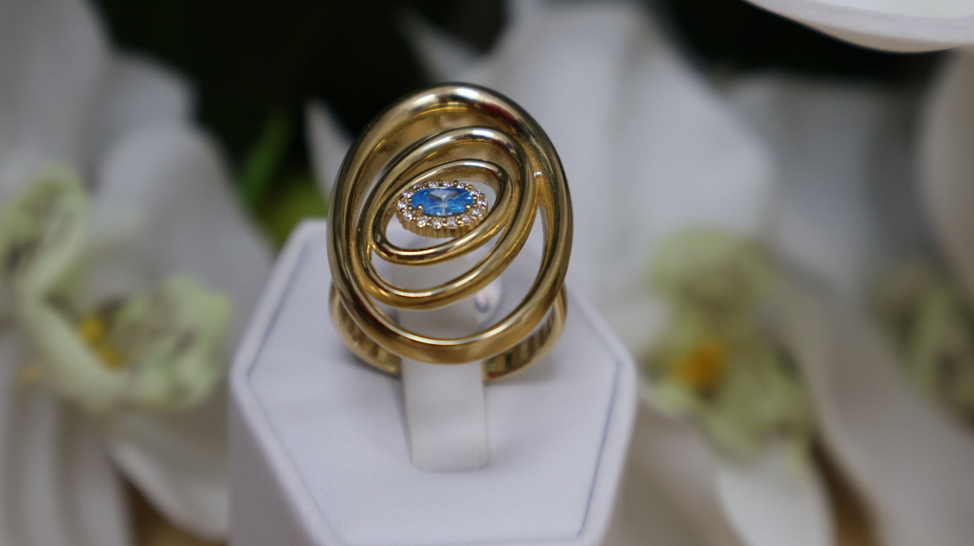 anillo de mujer 14k piedra azul aqua