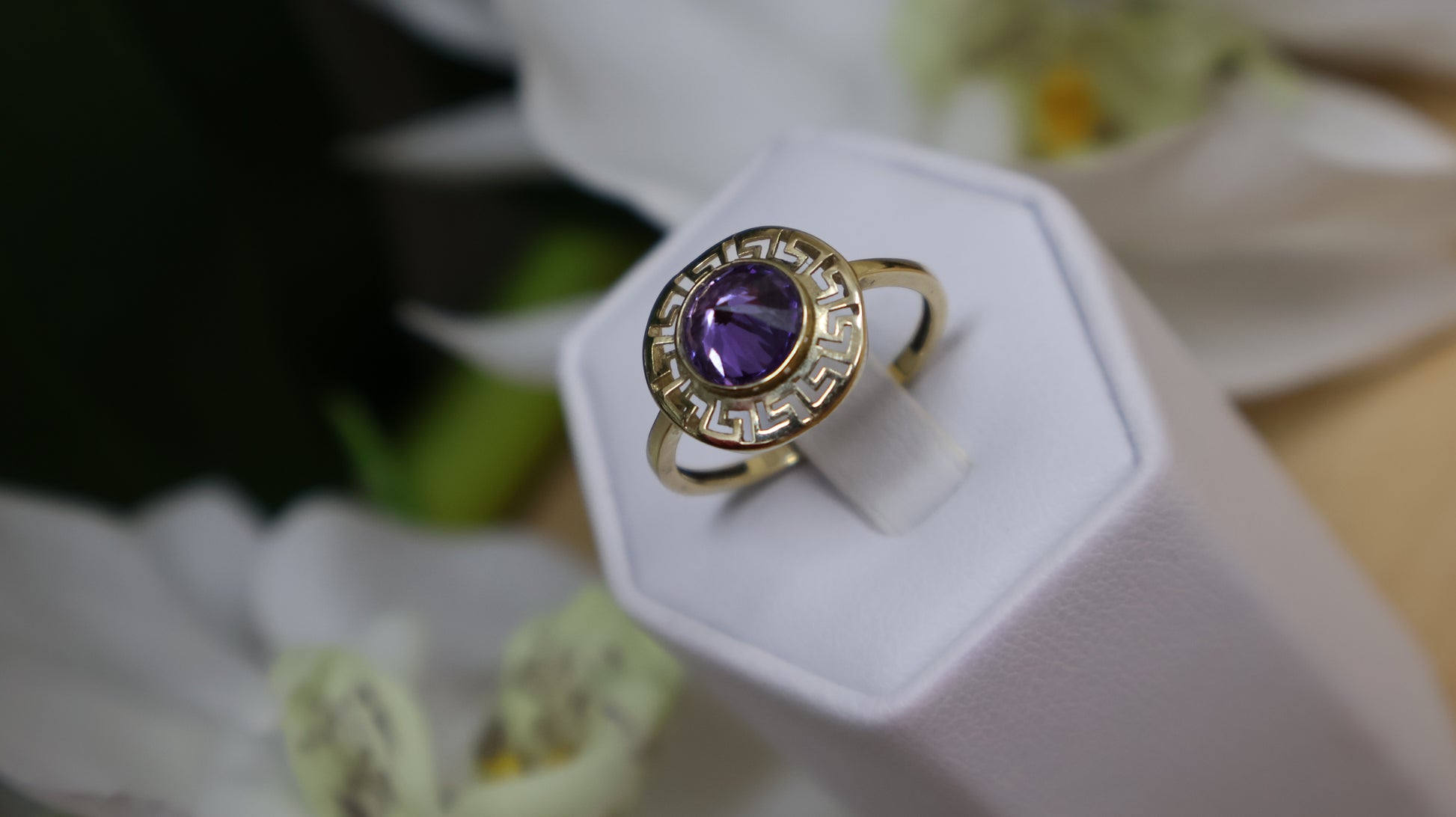 anillo de mujer de oro 14k de piedra malba
