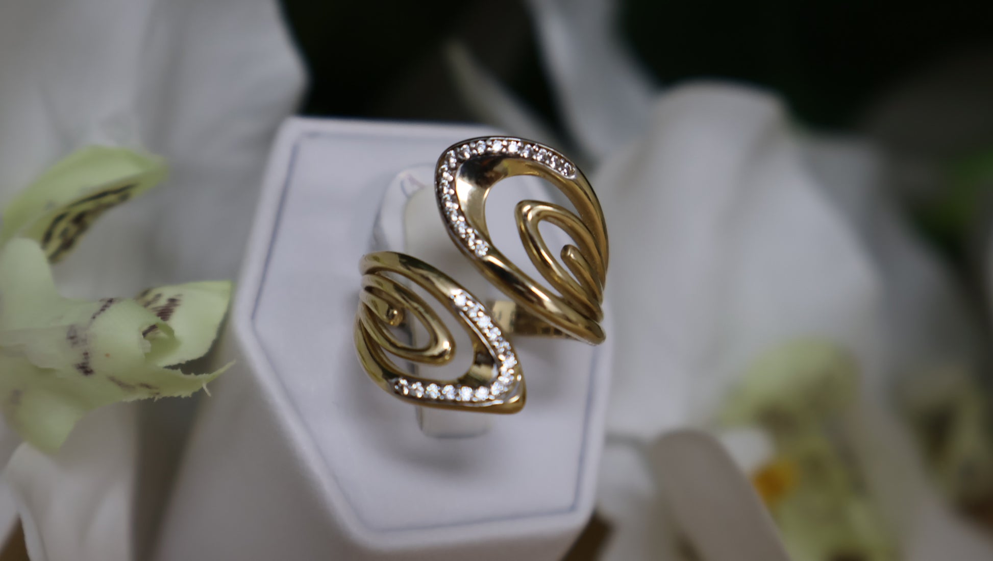 anillo de oja con siconia 14k