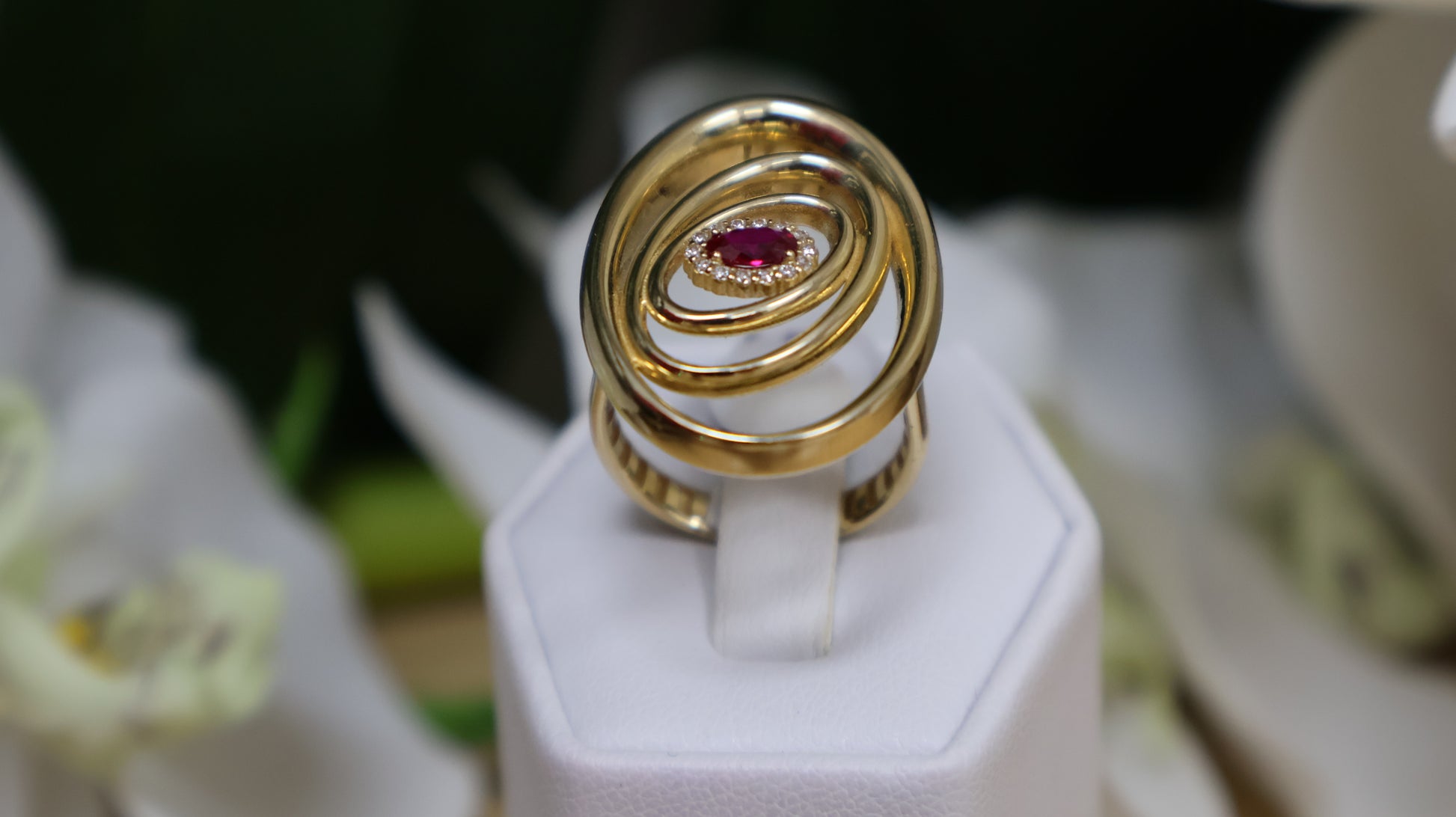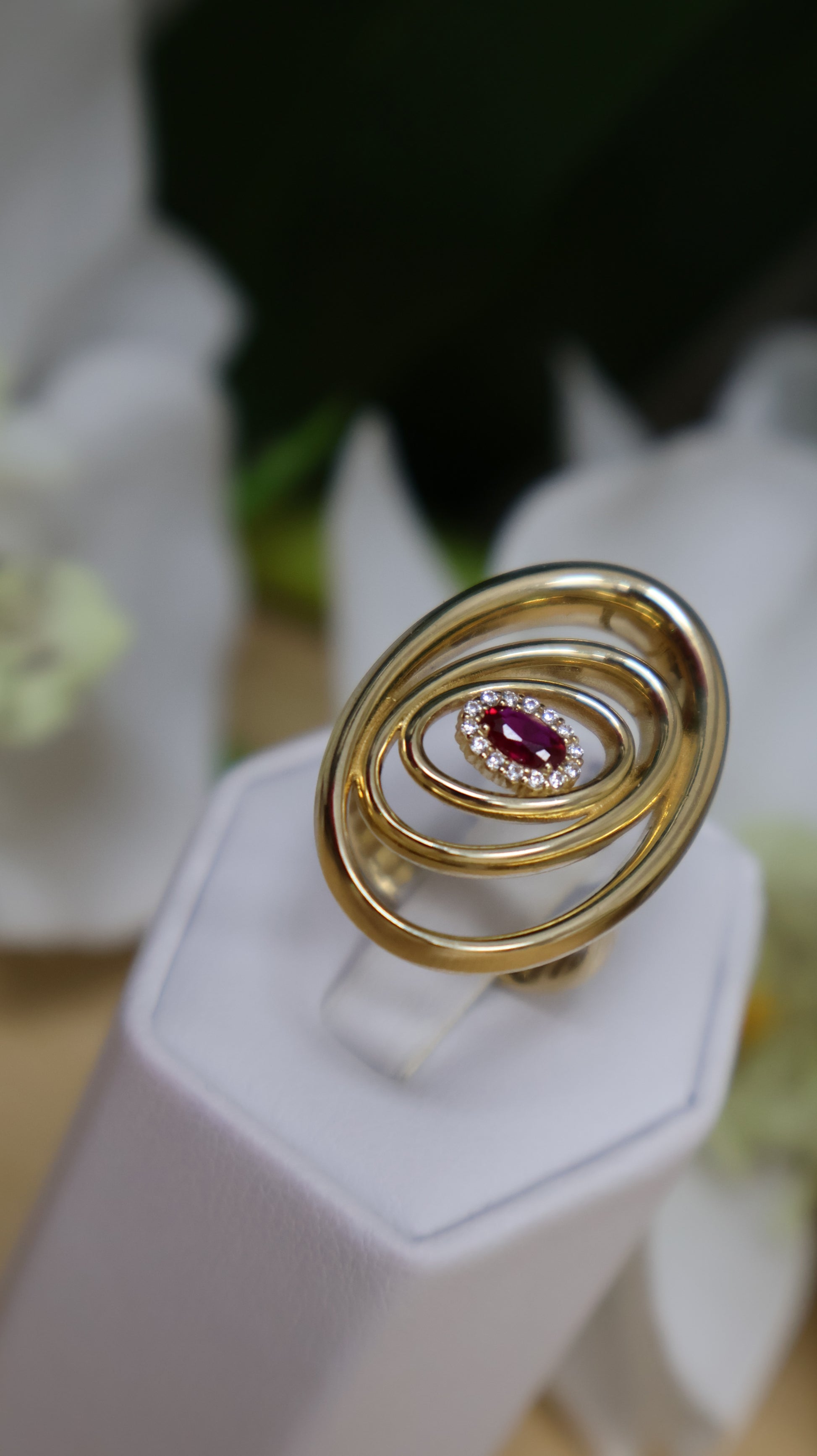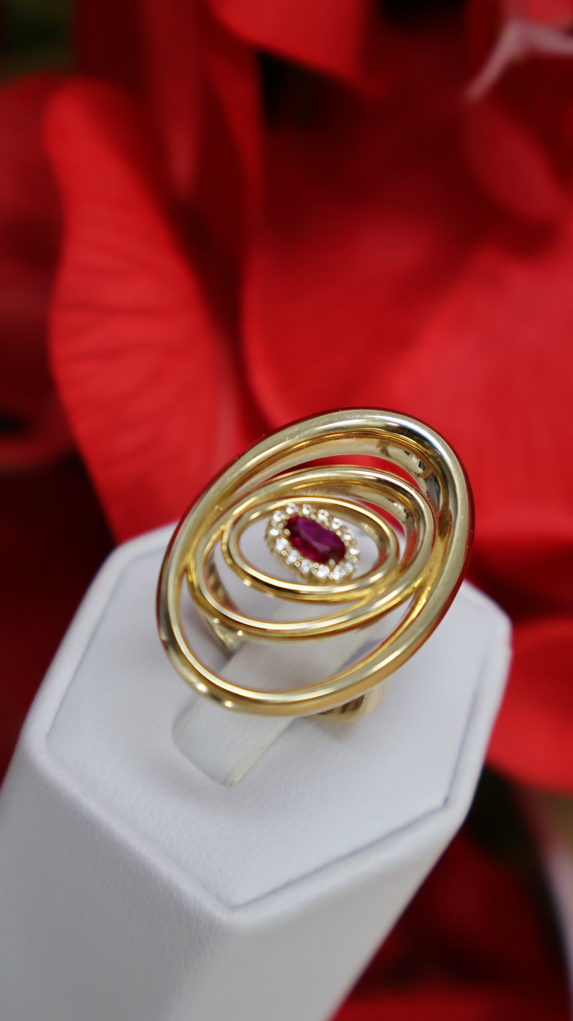 Este elegante anillo para mujer destaca por su piedra roja central, que aporta un toque de sofisticación y distinción. Su diseño delicado realza la belleza femenina, convirtiéndolo en una pieza ideal para ocasiones especiales o para añadir un detalle refinado a tu estilo diario.