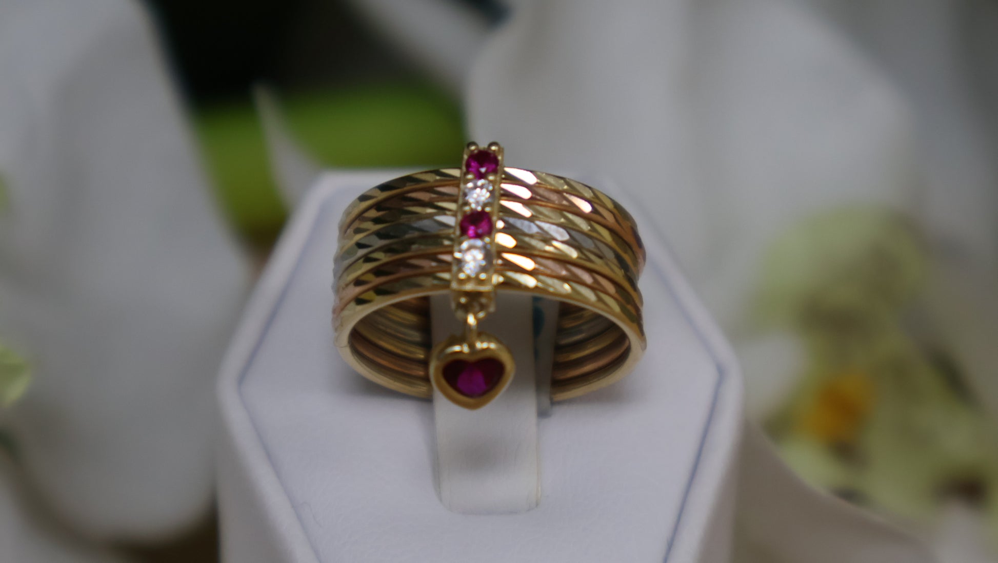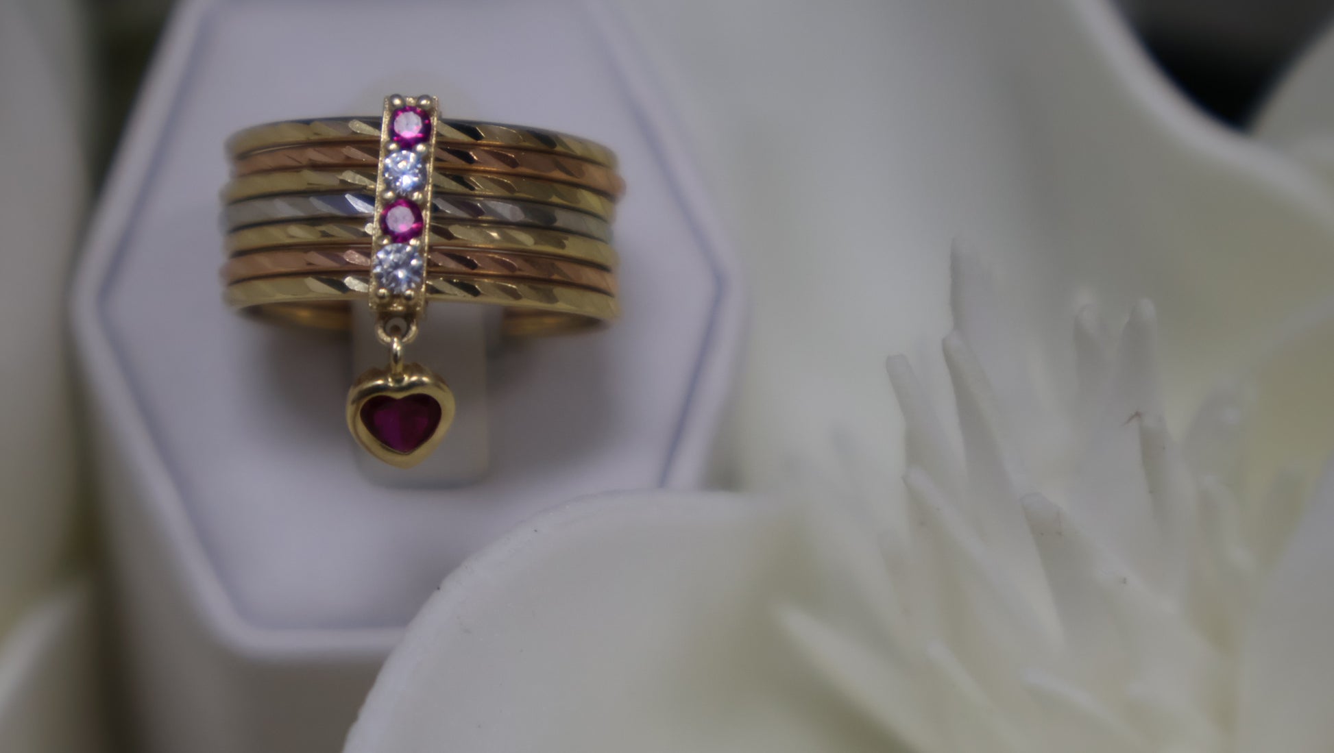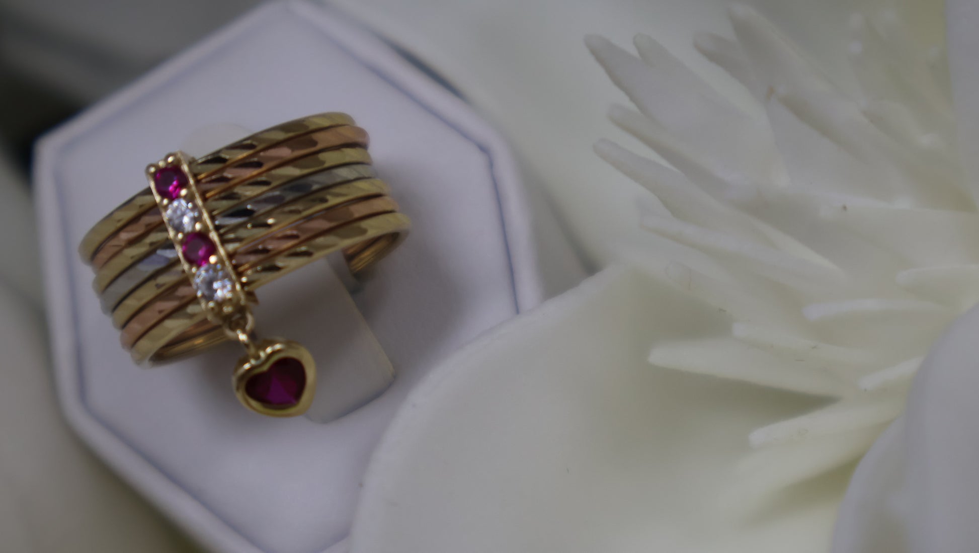 Este anillo de semanario en oro de 14k destaca por su elegante combinación de siconias blancas y rojas, que aportan un brillo vibrante y sofisticado. Su diseño clásico y atemporal lo convierte en una pieza perfecta para lucir todos los días, añadiendo un toque de color y distinción a tu estilo. Ideal para quienes buscan una joya que combine calidad, belleza y versatilidad en una sola pieza.