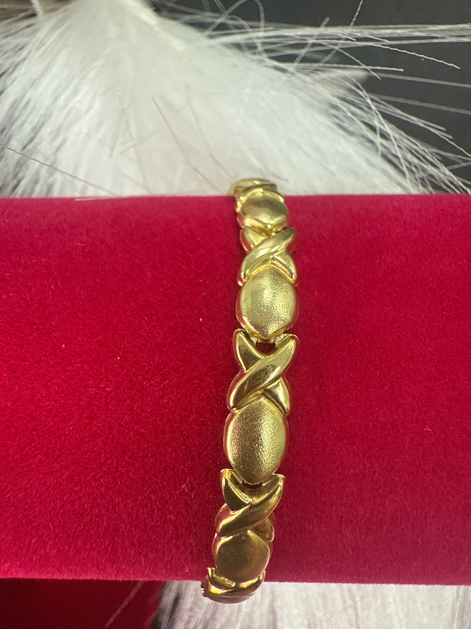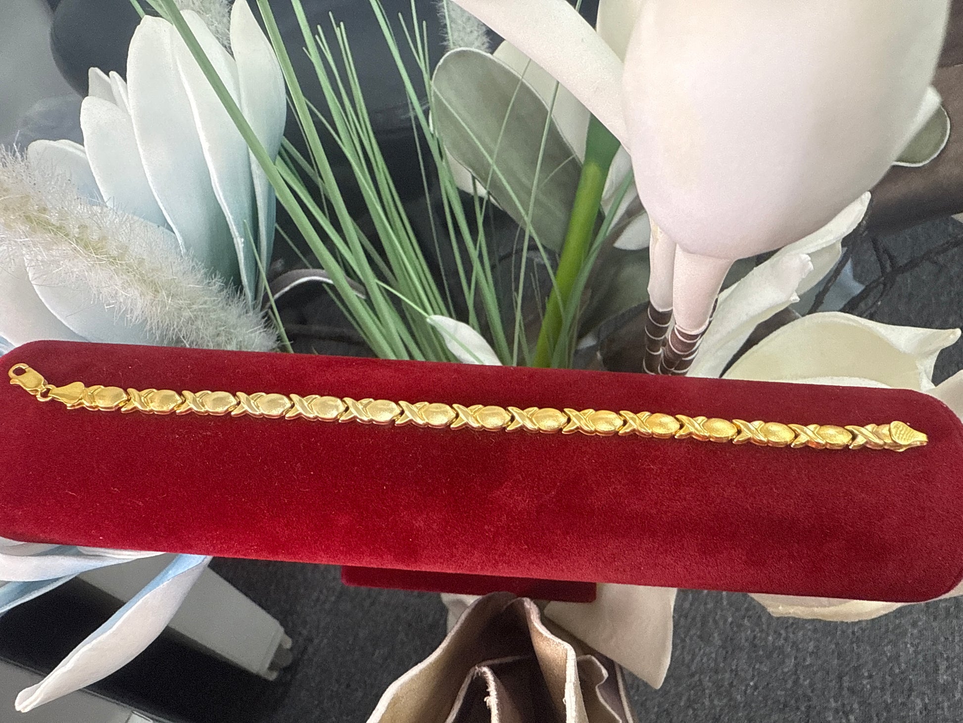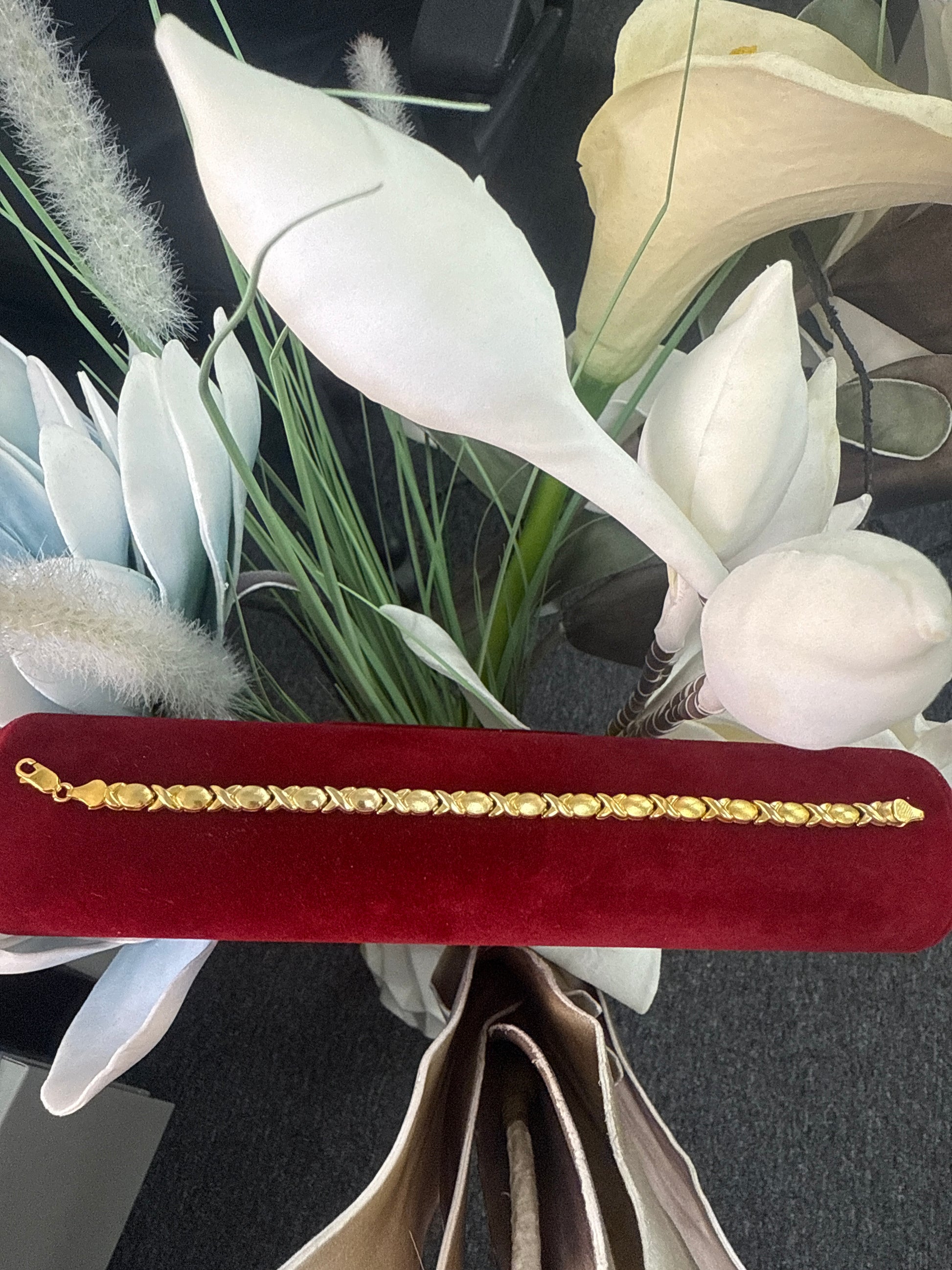 Añade un toque de elegancia a tu colección con esta manilla de mujer en oro de 10 quilates. Su diseño refinado y acabado brillante ofrecen un estilo sofisticado que realza cualquier atuendo, perfecto para destacar en cualquier ocasión. Una joya duradera que combina calidad y belleza para acompañarte siempre.