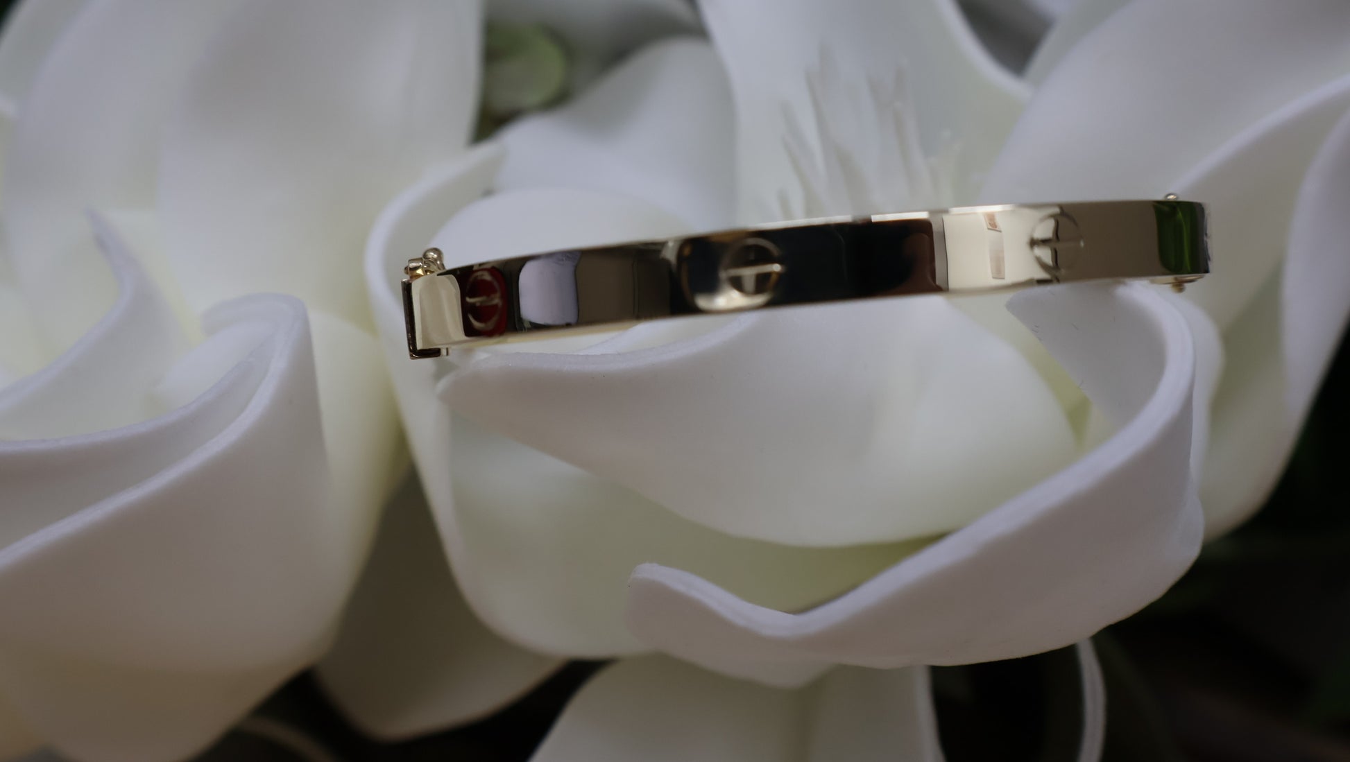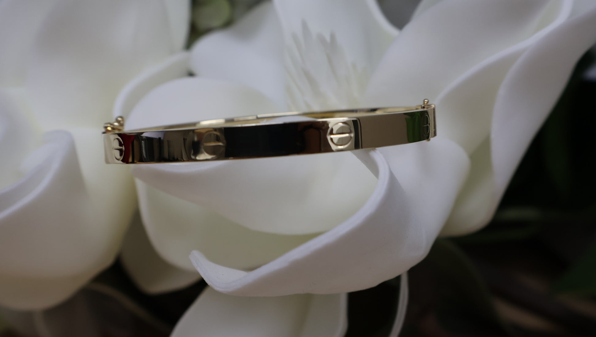 Esta elegante manilla Cartier para mujer, elaborada en oro de 10 quilates, combina sofisticación y durabilidad. Su diseño clásico realza cualquier atuendo, ofreciendo un toque de lujo discreto que destaca tu estilo personal. Perfecta para ocasiones especiales o el uso diario, esta pieza es una inversión en elegancia atemporal.