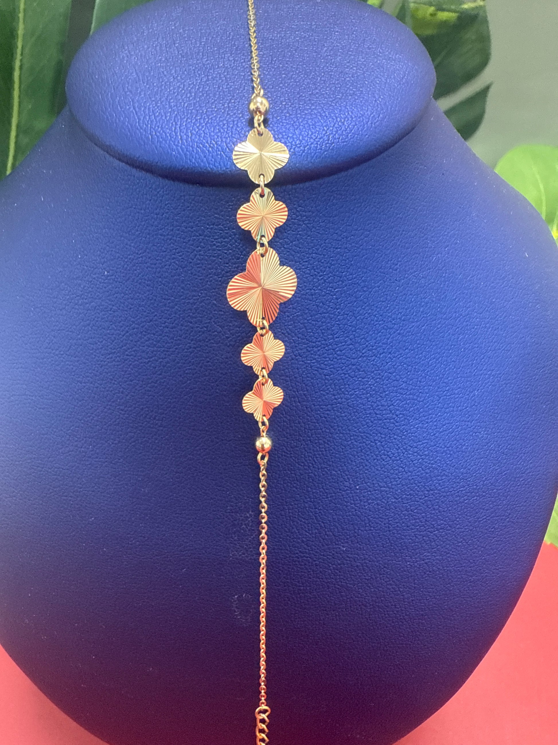 Esta manilla de 10k para mujer destaca por su diseño delicado y elegante, ideal para complementar cualquier atuendo con un toque sofisticado. Su acabado fino y ligero ofrece comodidad durante todo el día, realzando tu estilo de manera sutil pero impactante. Perfecta para ocasiones especiales o para añadir un detalle refinado a tu vestimenta diaria.
