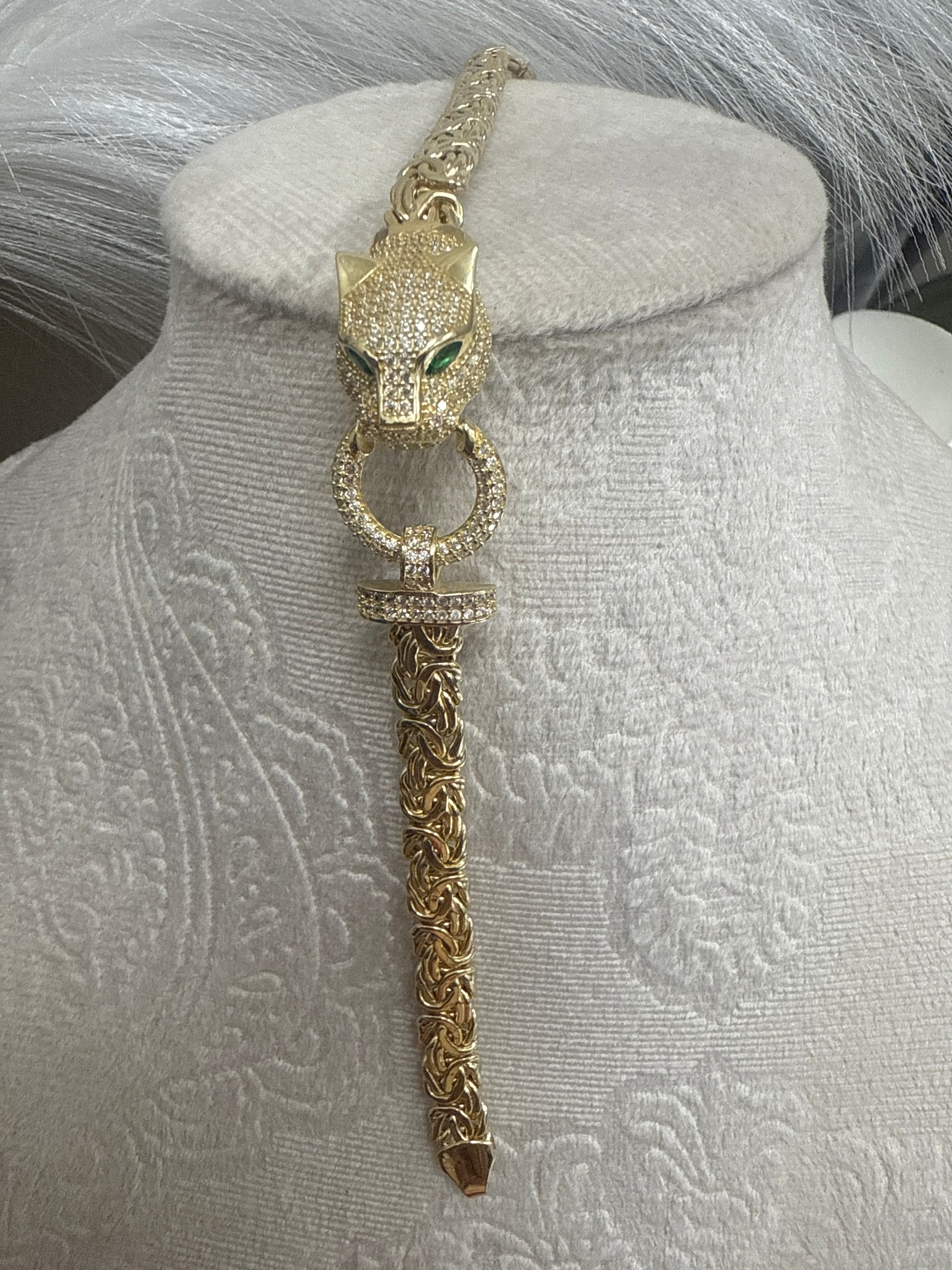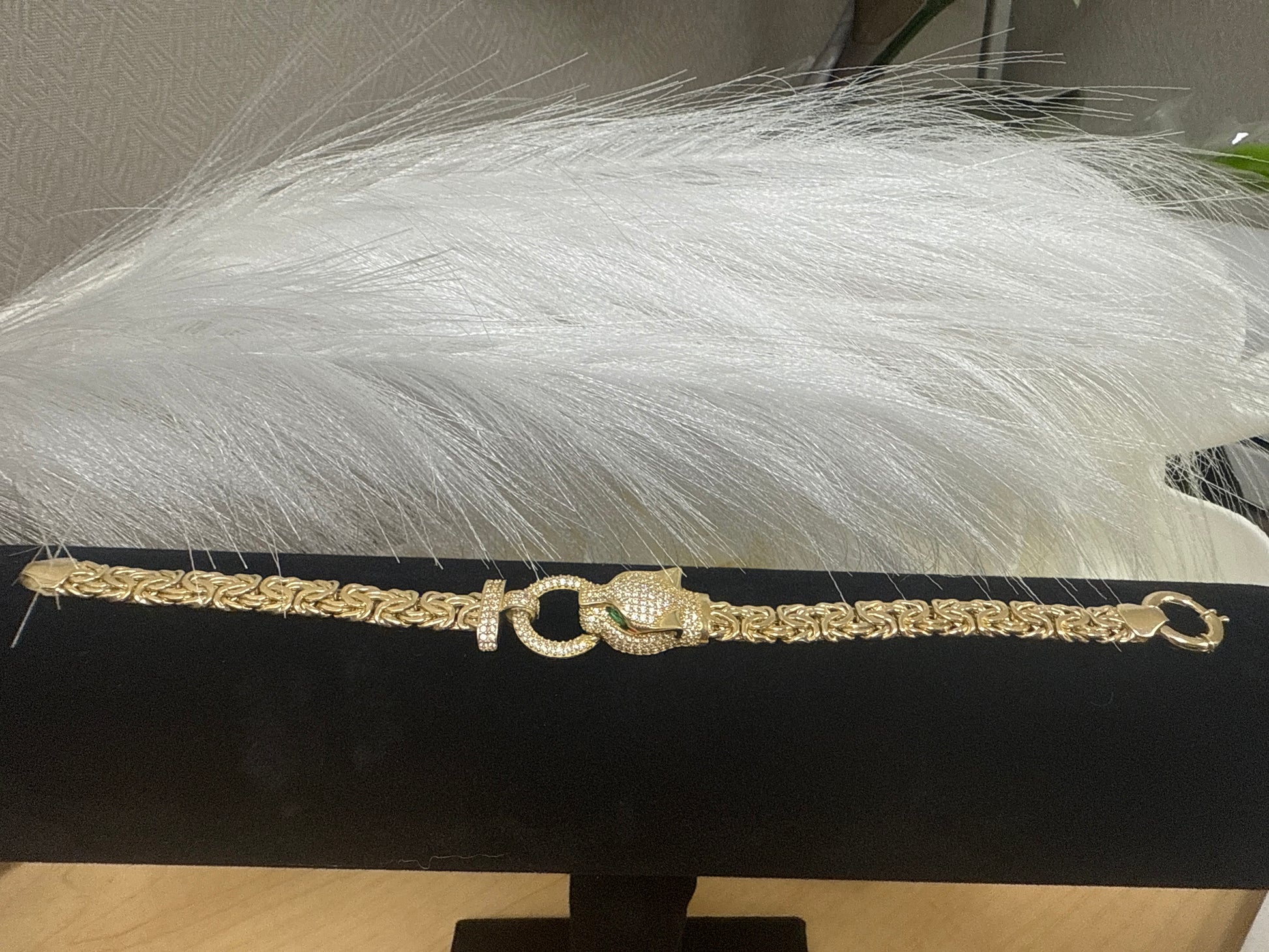 Manilla de mujer de oro 10k con circonia en verde y blanca elegante para cualquier ocacion