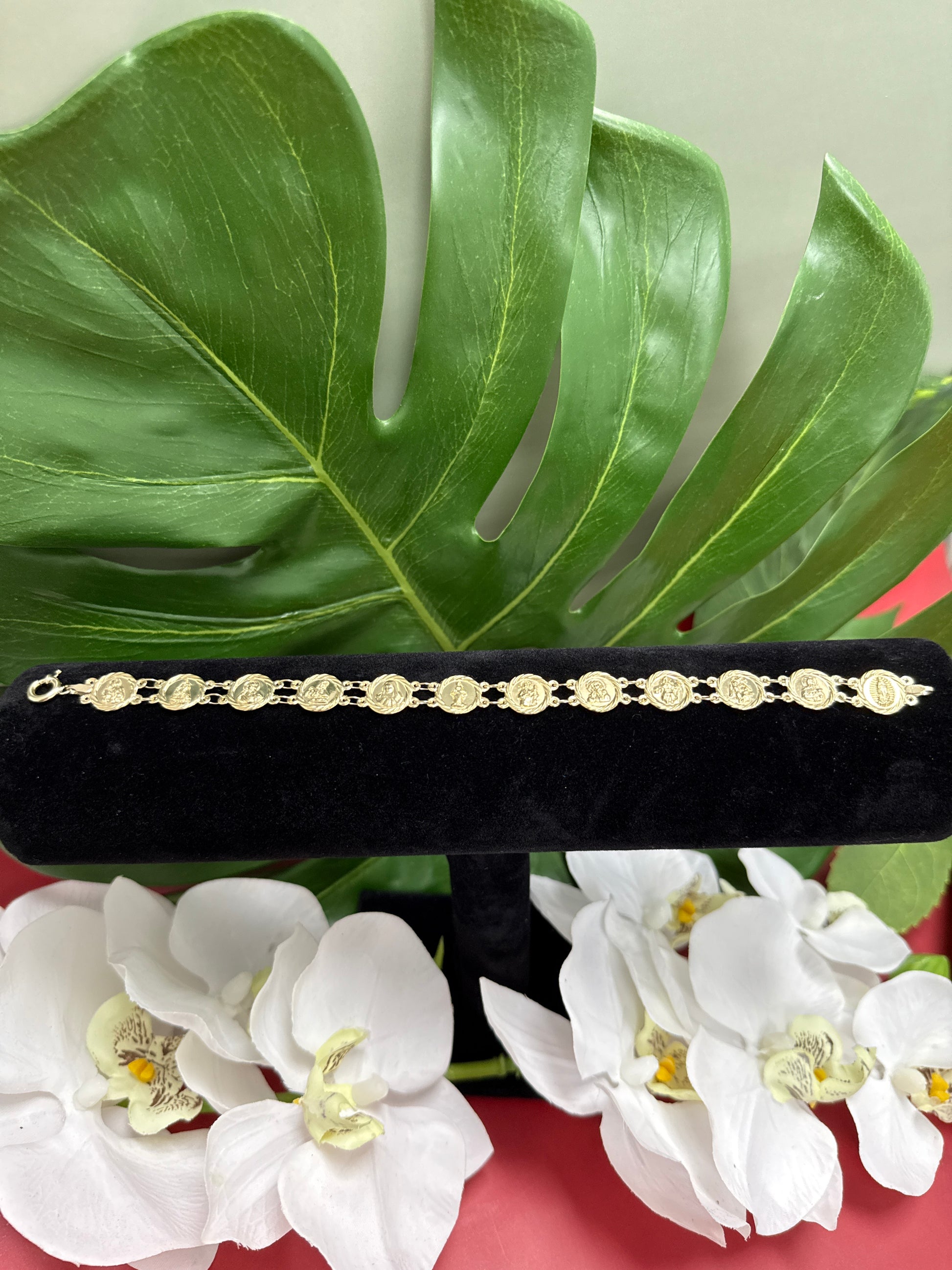 Esta manilla de mujer es una joya religiosa elaborada en oro de 10 quilates, diseñada con la imagen de Todos los Santos. Perfecta para quienes buscan expresar su fe con elegancia y devoción diaria. Su acabado delicado ofrece comodidad y un detalle significativo que acompaña cada momento. Un accesorio que combina espiritualidad y estilo para mujeres que valoran la conexión con sus creencias.