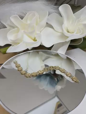 Manilla de mujer religiosa cristiana de oro 10k con todos los santos