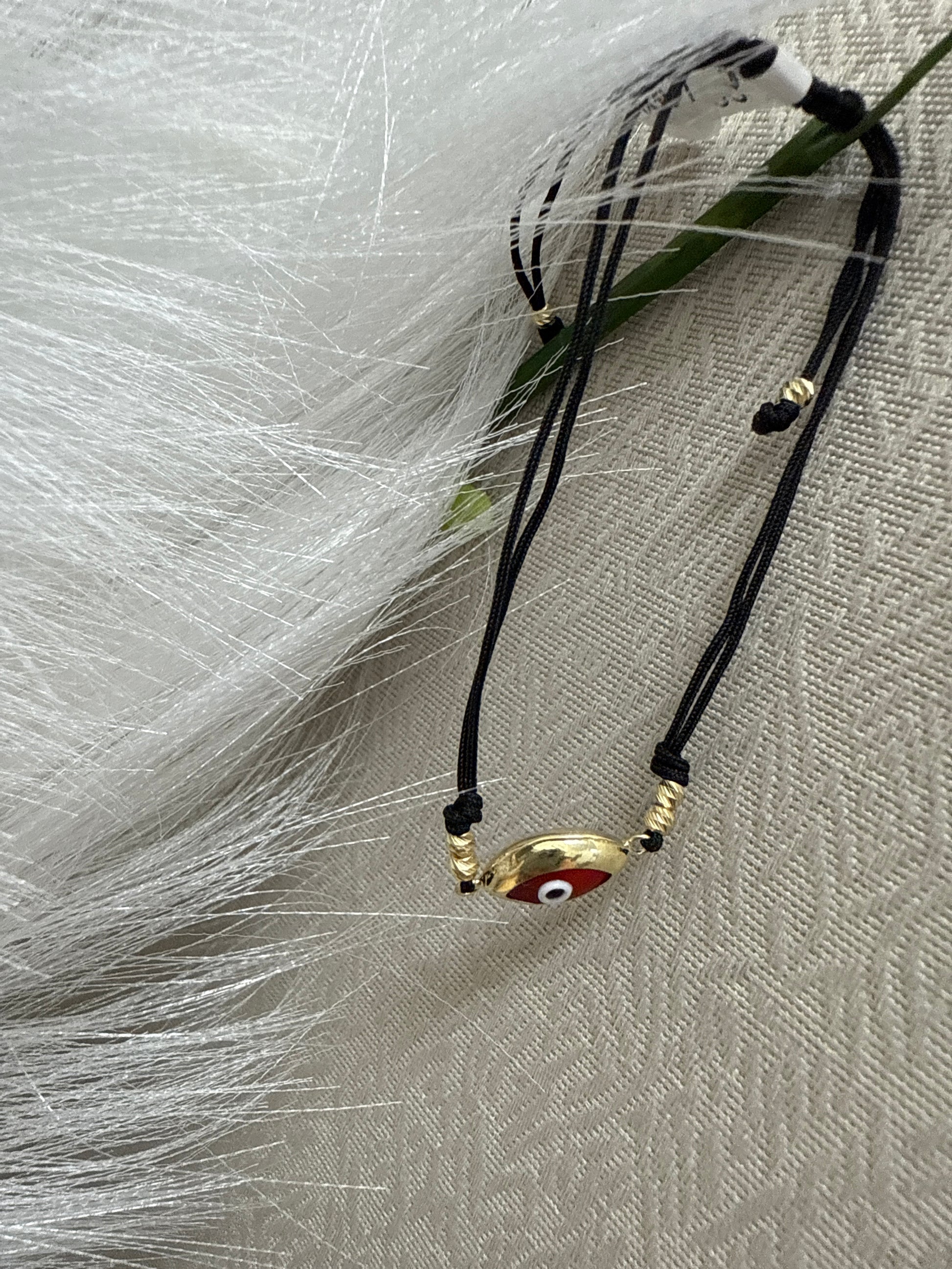 Manilla de ojito de color rojo y azul de coldon , oro 14k