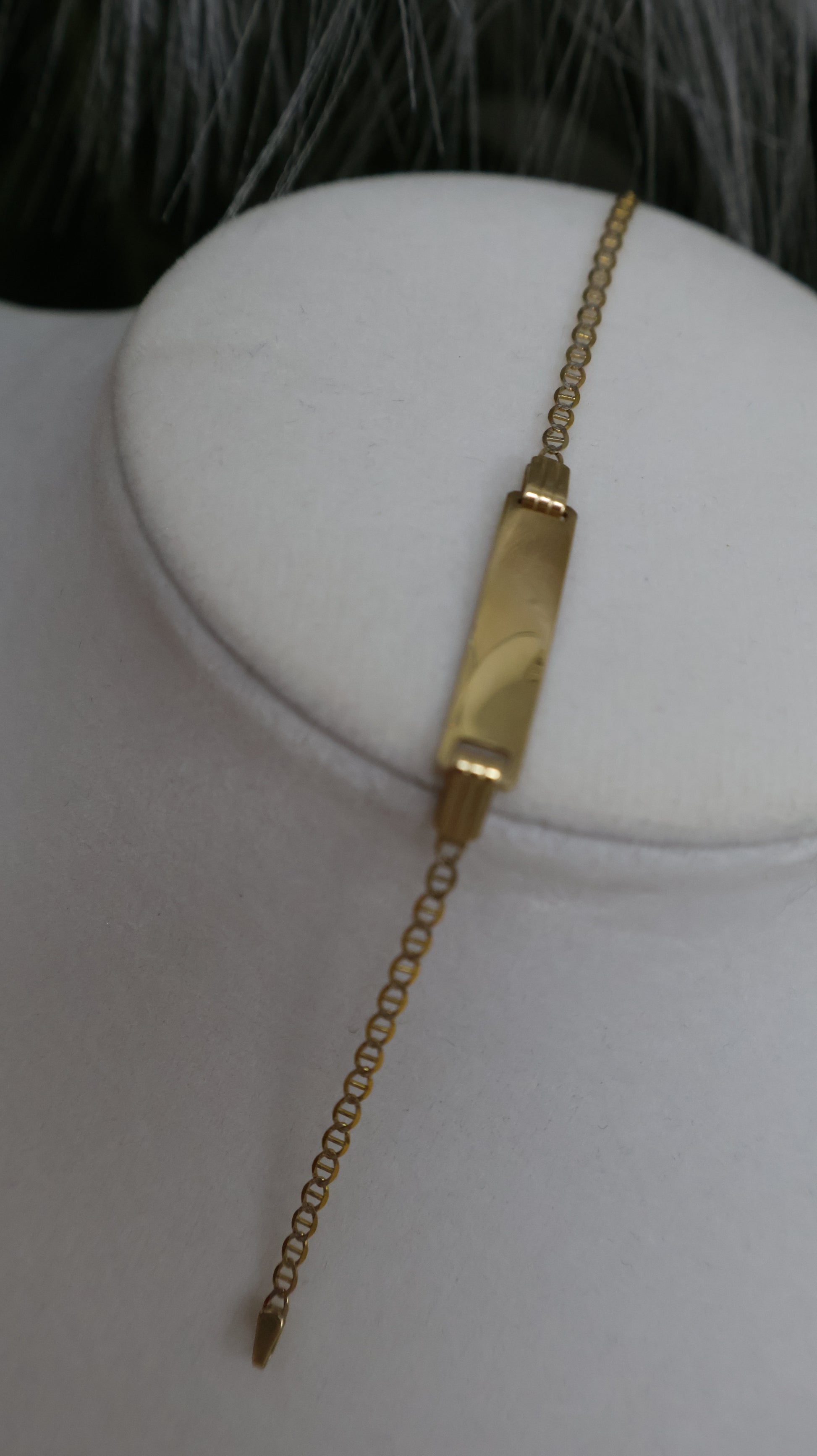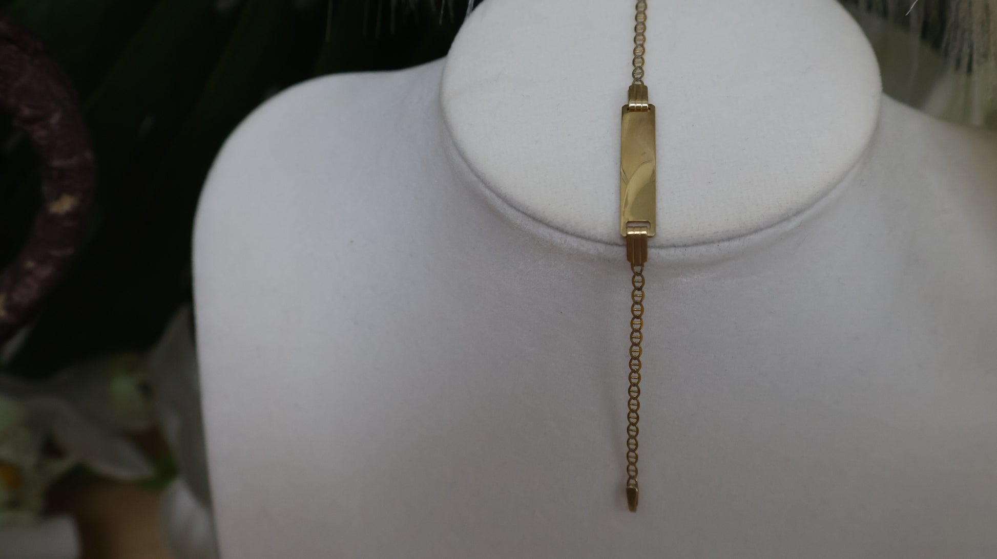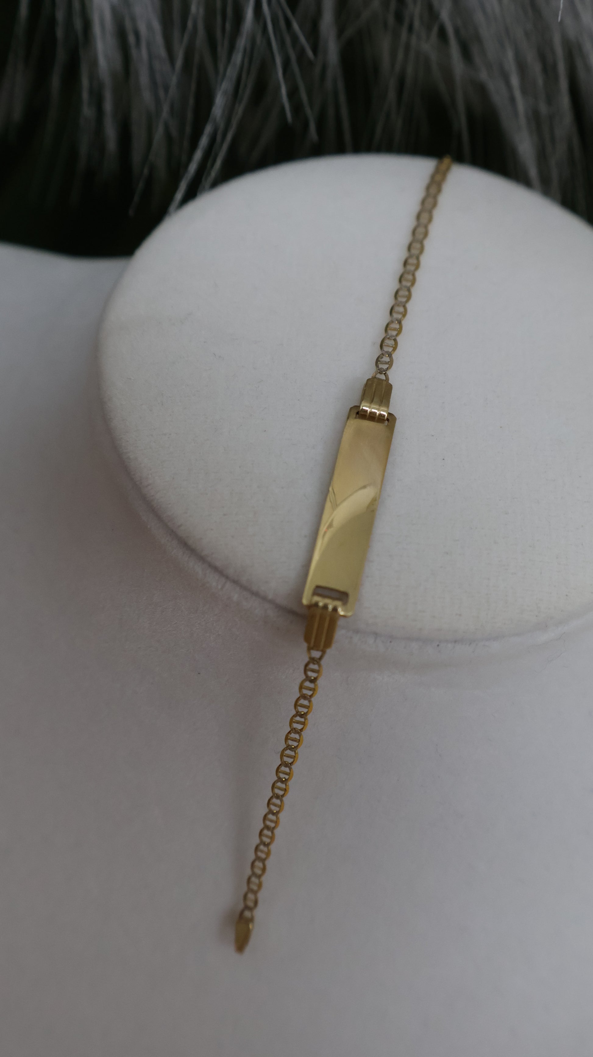 Esta manilla de placa en oro de 10k es el complemento ideal para quienes buscan un accesorio elegante y duradero. Su acabado brillante y diseño atemporal aportan un toque de sofisticación que realza cualquier atuendo. Perfecta para uso diario o eventos especiales, esta pieza combina calidad y estilo para destacar tu personalidad con distinción.
