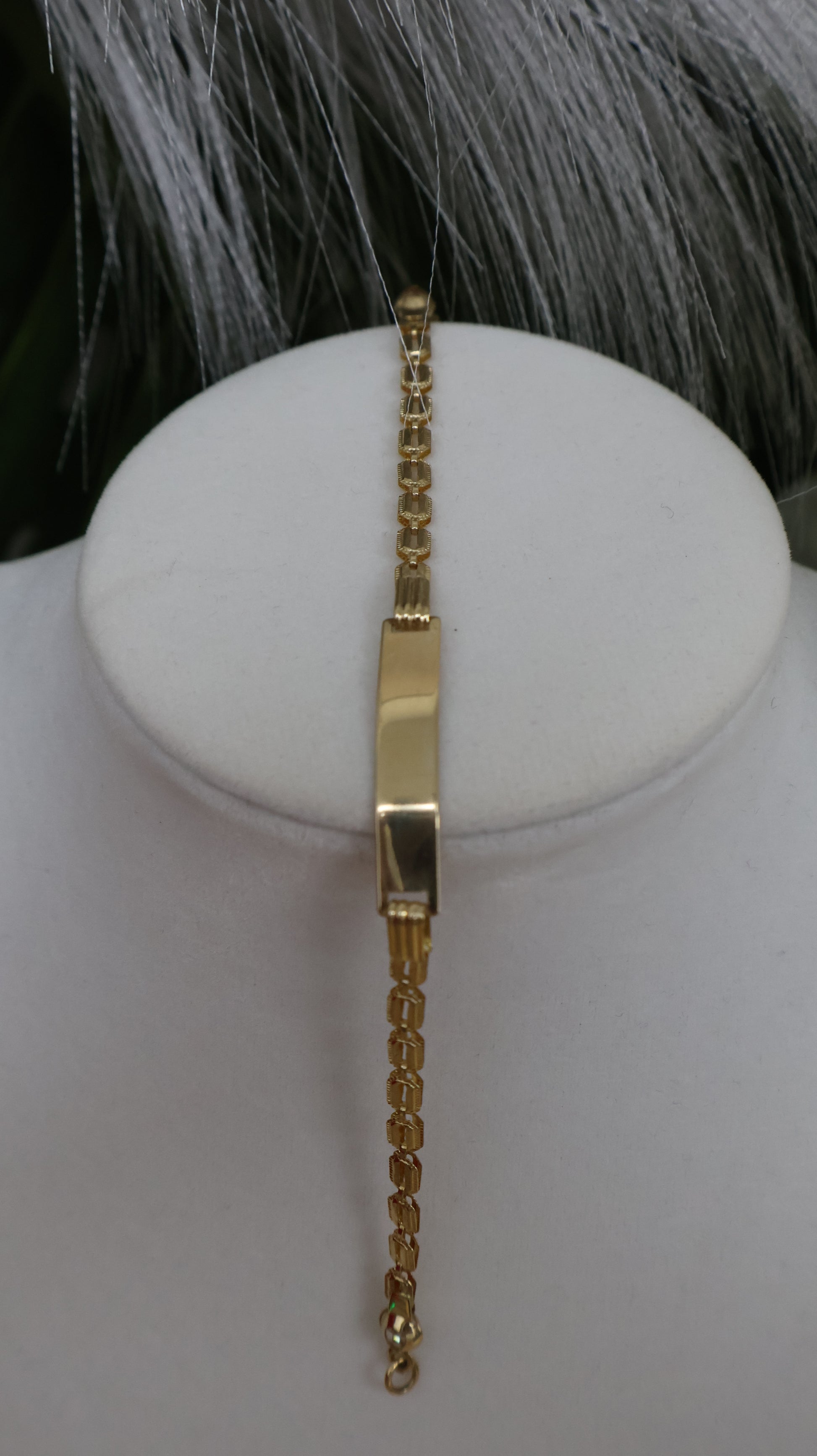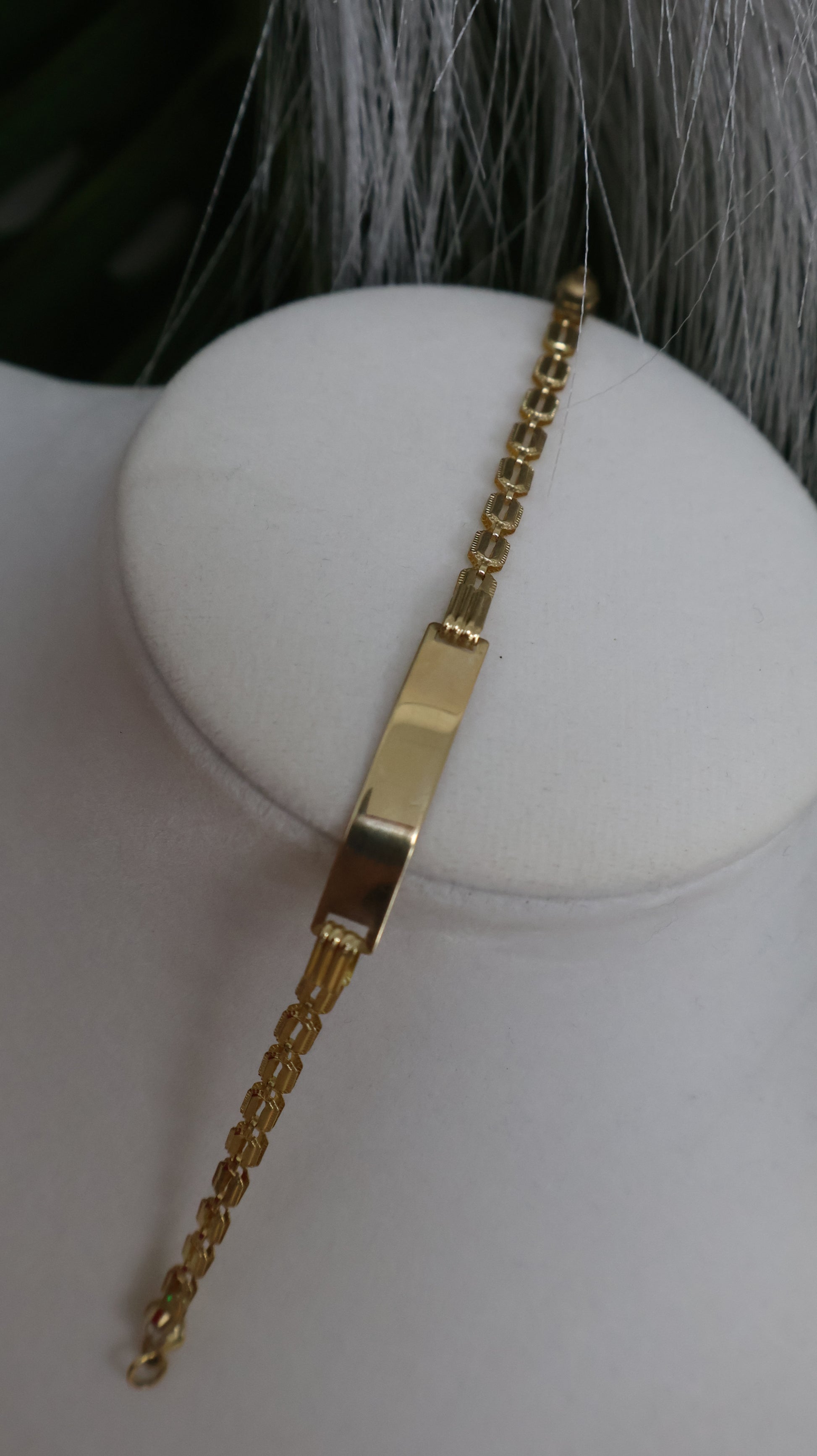 Manilla para ninos en oro de 10k con placa se le pone diseno a la placa sin costo