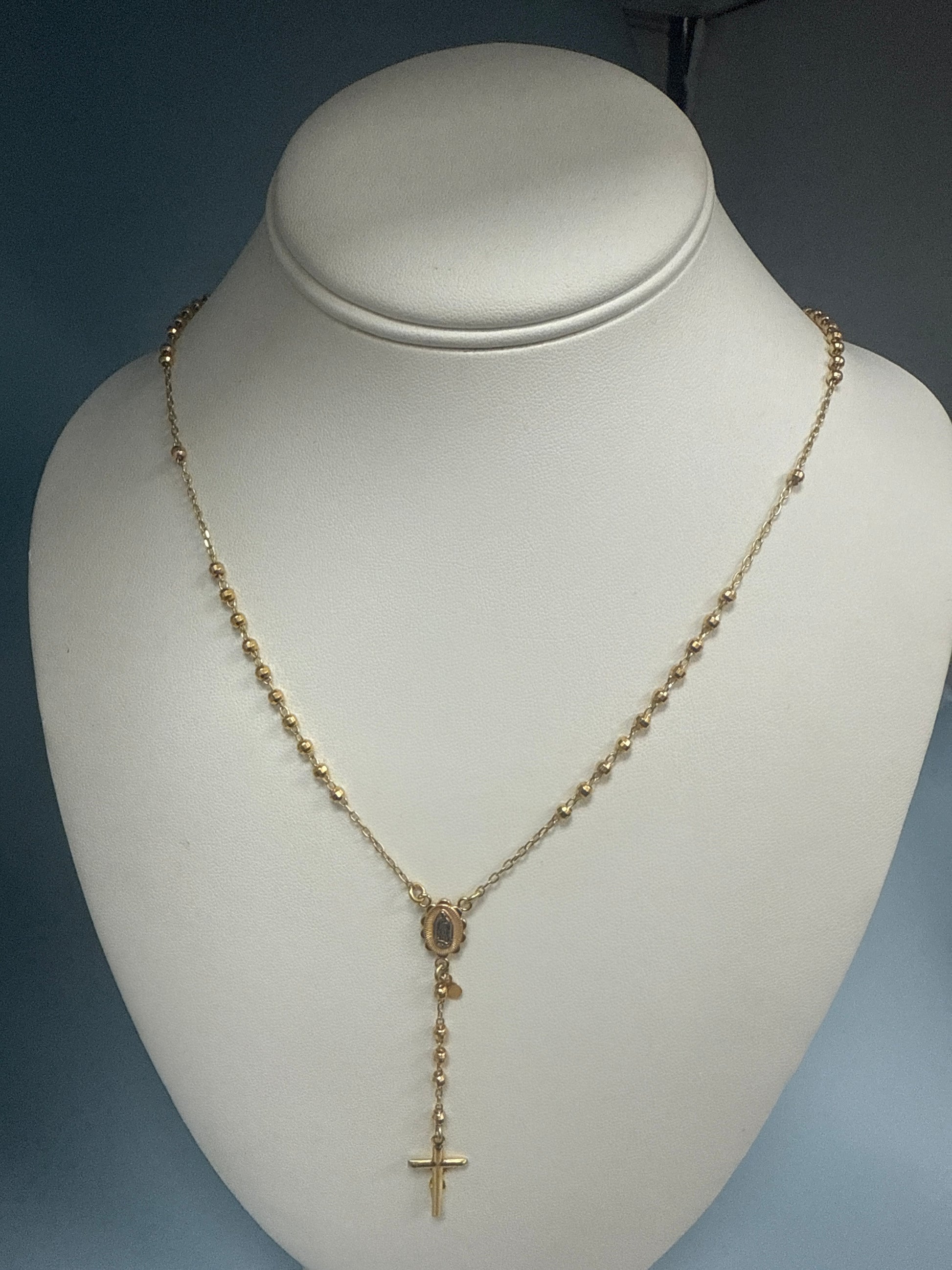 ¡Lleva tu fe a un nuevo nivel con nuestro hermoso rosario de oro 10k para mujer! Con su cadena y crucifijo únicos, este rosario es una combinación perfecta de estilo y devoción. ¡Haz una declaración de moda y continúa tu conexión espiritual con este impresionante rosario!