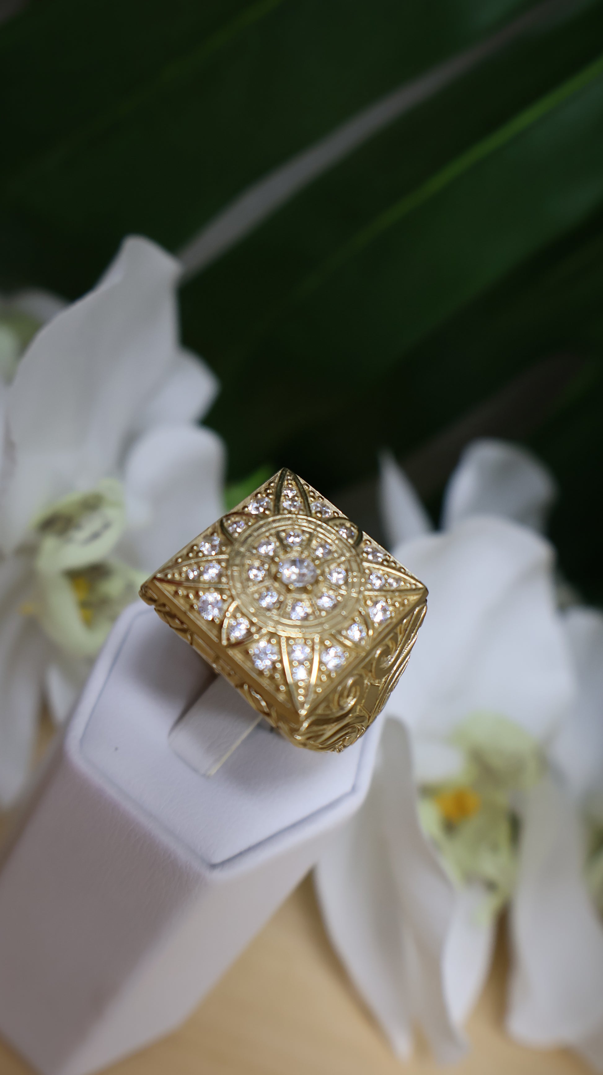 Esta roseta de 14k presenta un diseño contemporáneo en forma de hoja, adornada con brillantes detalles de ciconia. Fabricada en oro puro, combina elegancia y modernidad, ofreciendo una pieza única que realza tu estilo con sofisticación y un toque natural. Ideal para quienes buscan destacar con distinción.