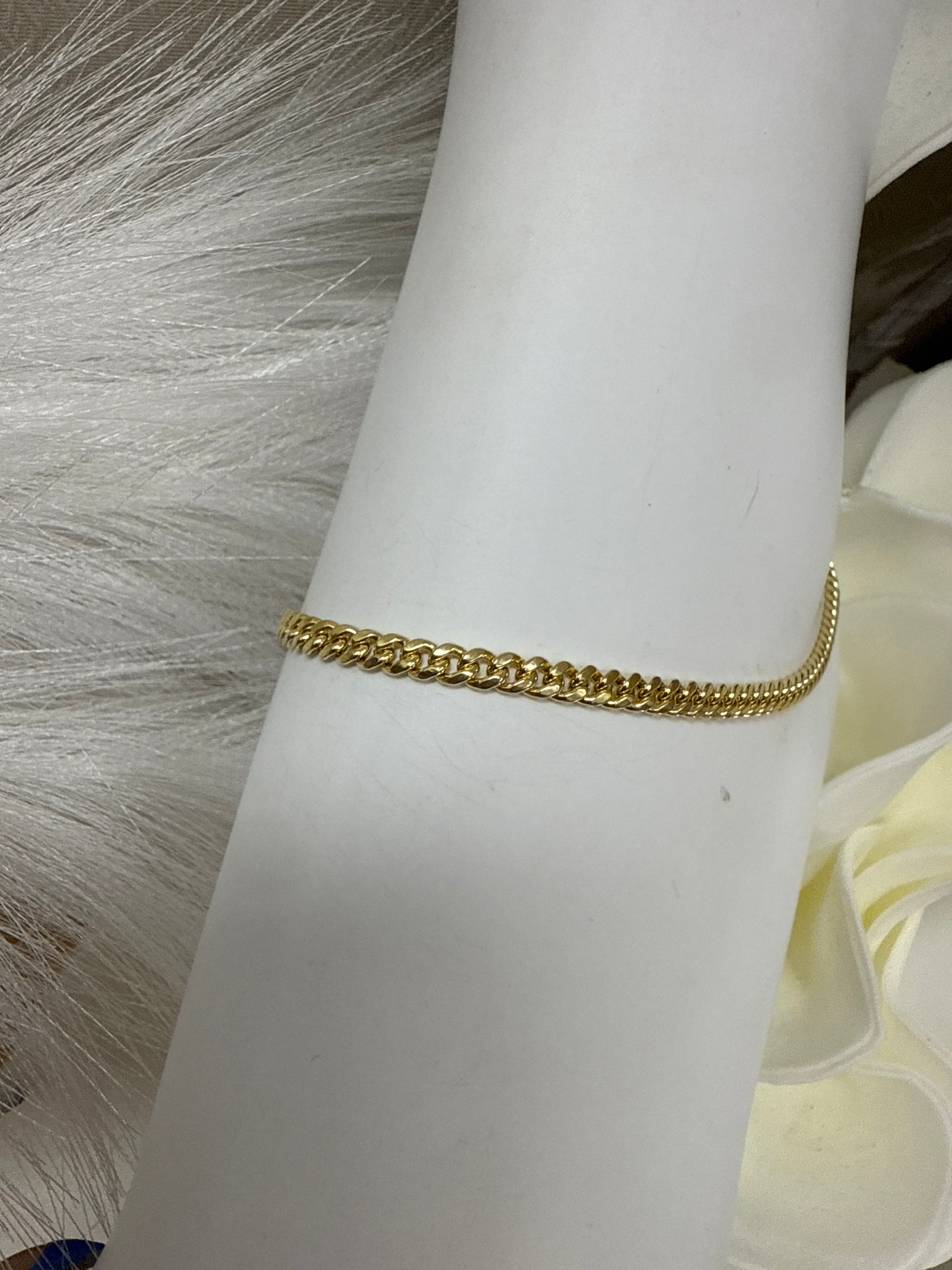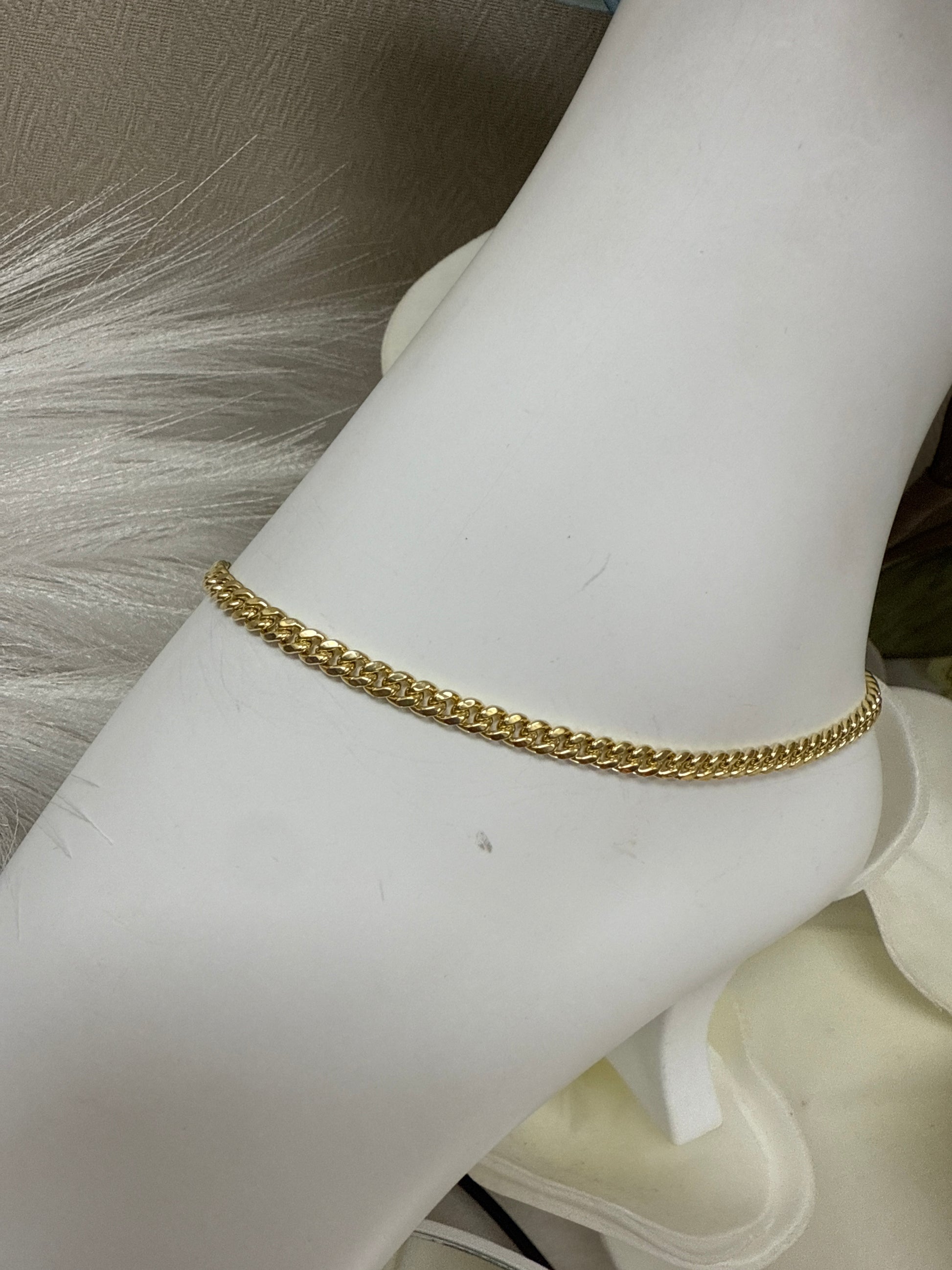 Esta tobillera de eslabón cubano en oro 10k para mujer combina un diseño clásico con la durabilidad del oro genuino. Perfecta para acompañar tu estilo diario, ofrece un toque de elegancia sutil y resistencia para que siempre te sientas segura y radiante en cada paso.